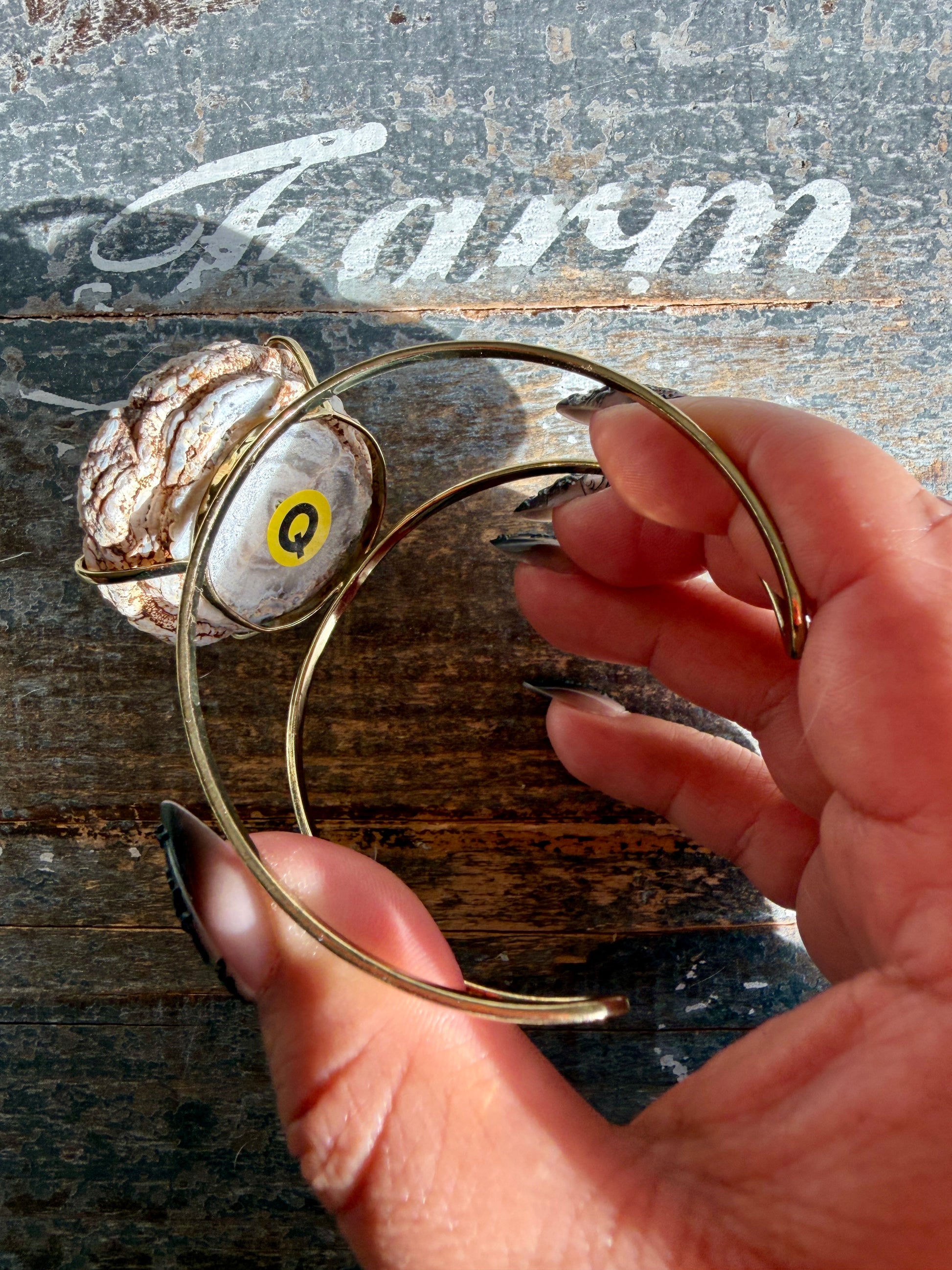 Set in a gold-tone adjustable cuff, the stone is secured while remaining the clear focal point. The open cuff design allows for a comfortable, flexible fit and highlights the natural contours of the agate from every angle.