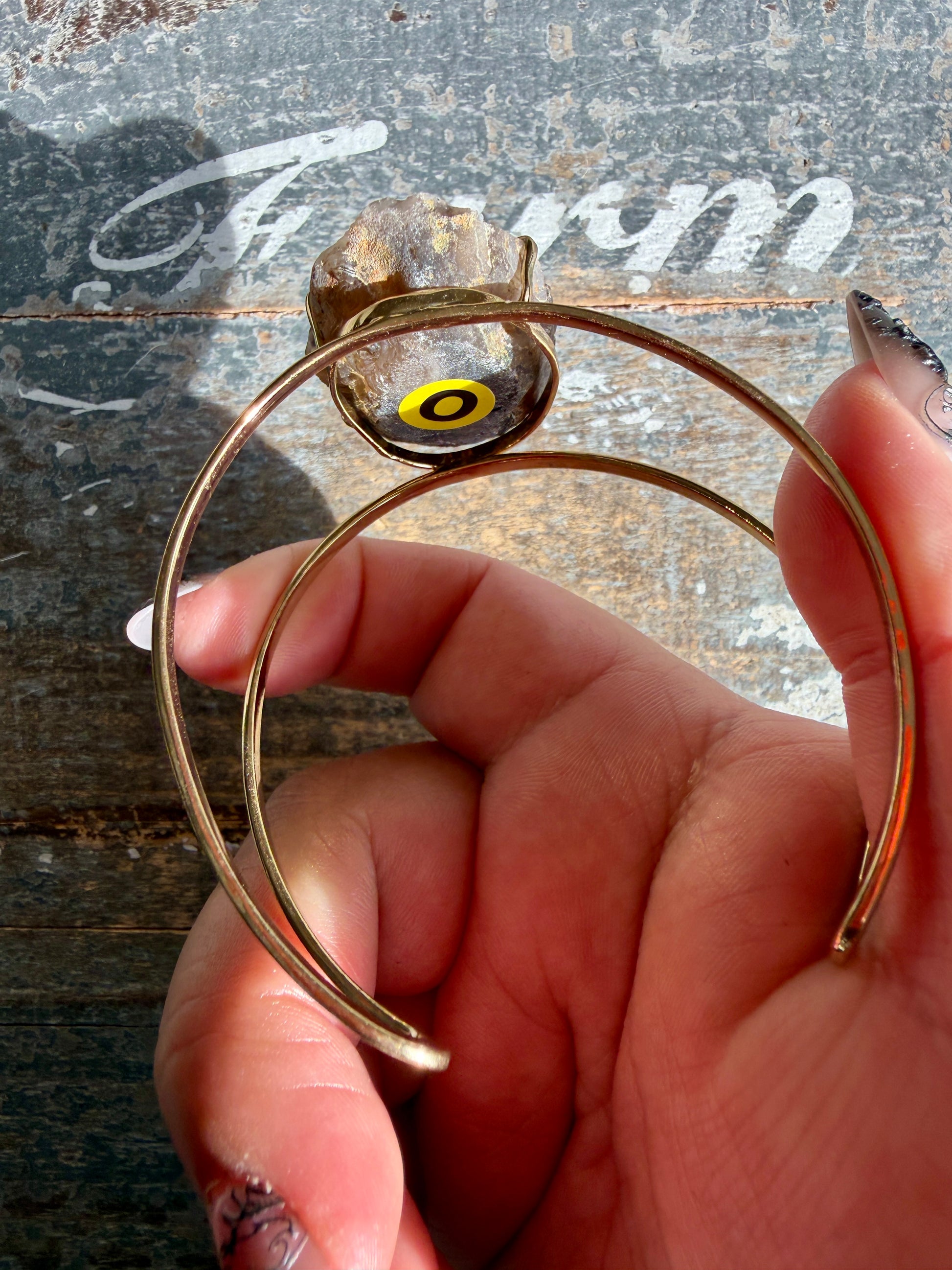 Set in a gold-tone adjustable cuff, the stone is secured while remaining the clear focal point. The open cuff design allows for a comfortable, flexible fit and highlights the natural contours of the agate from every angle.