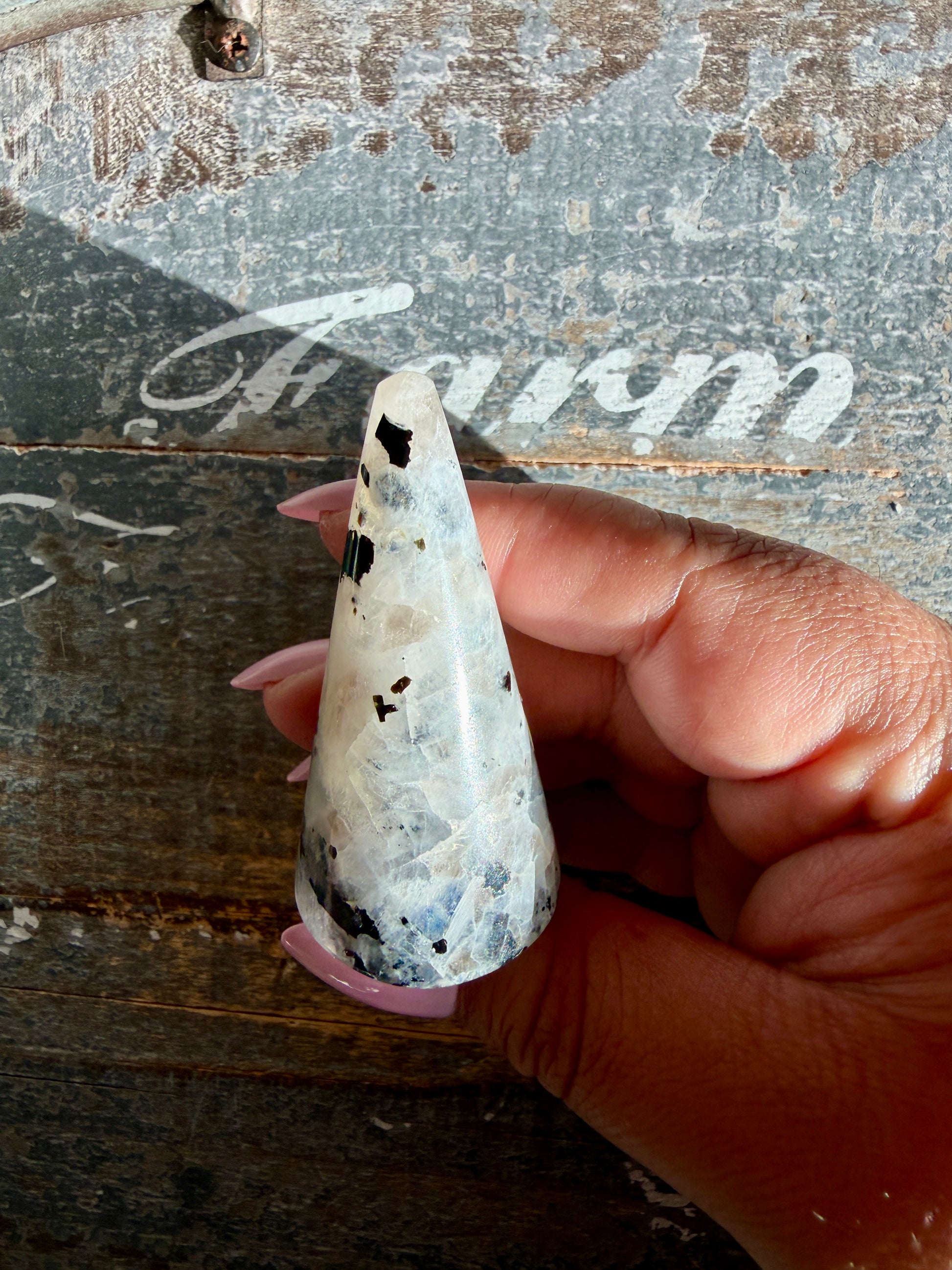 Shimmering with an ethereal blue flash, our Rainbow Moonstone from India is a crystal of mystery, magic, and spiritual alignment. Known as a stone of the Divine Feminine, Rainbow Moonstone carries a calming, nurturing energy while awakening your inner wisdom and psychic gifts.