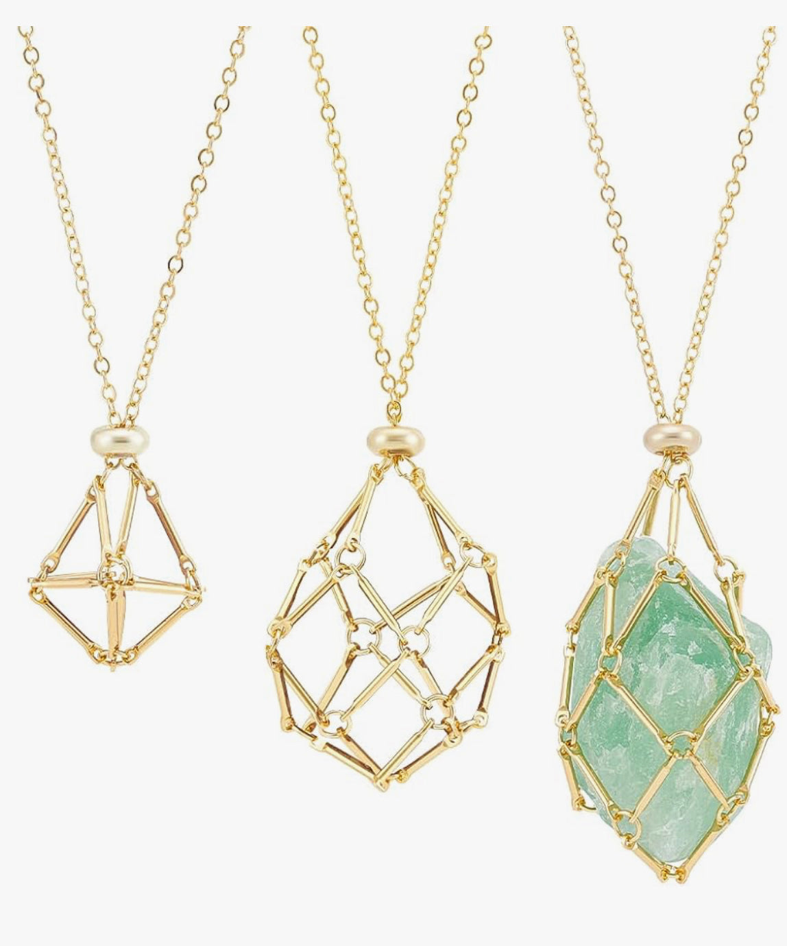 Radiant and full of intention, this gold tumble holder necklace lets you wear your favorite crystal wherever you go. The open-frame design holds most standard tumbles and makes it easy to switch them out anytime. It's bold, beautiful, and ready to support your daily rituals.