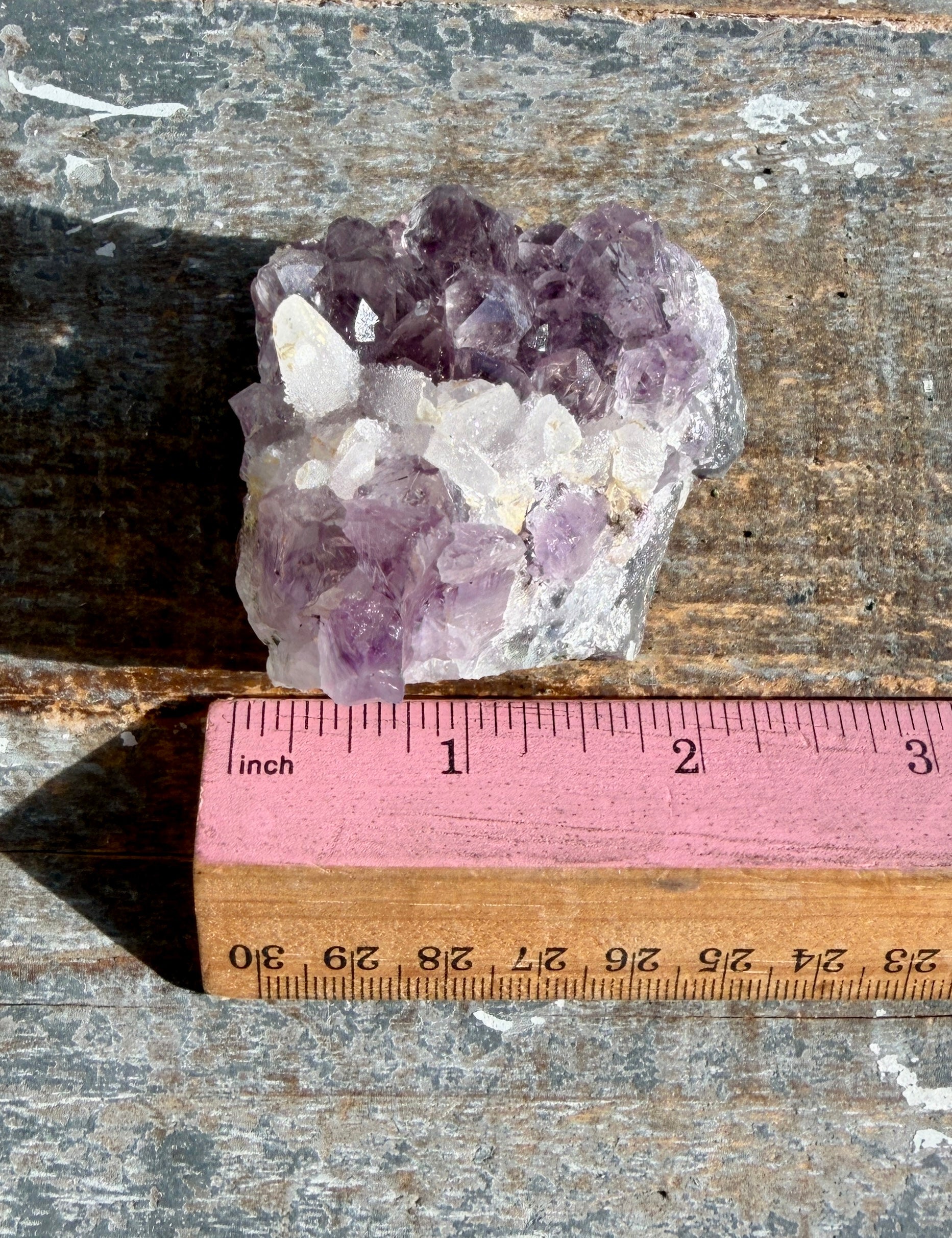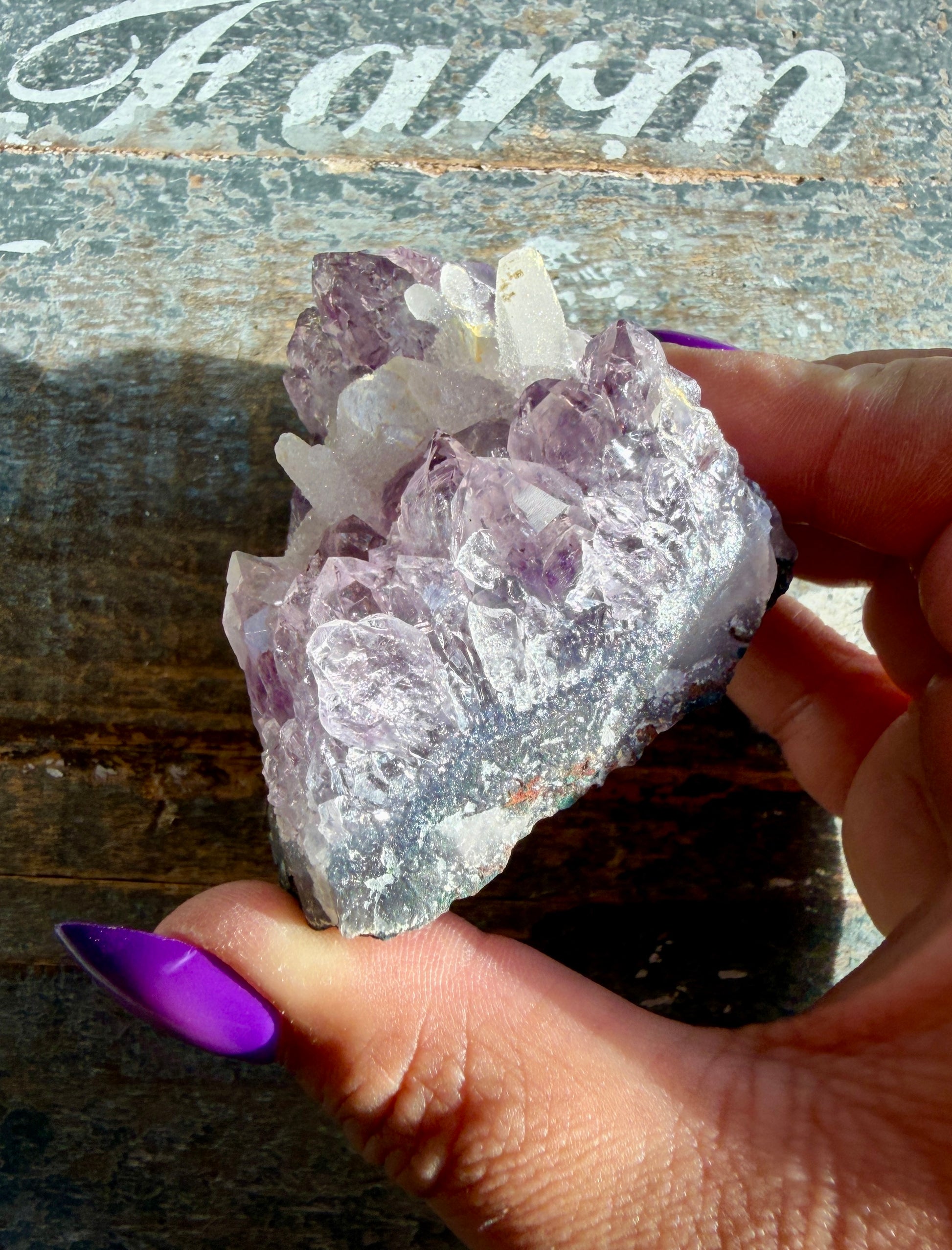 Amethyst with Druzy Calcite is a stunning natural pairing that radiates both peace and light. The soothing purple tones of amethyst create a calming foundation, while the delicate sparkle of druzy calcite adds a layer of clarity, optimism, and joy. Together, they embody harmony between stillness and sparkle — the energy of deep inner peace illuminated by divine light.
