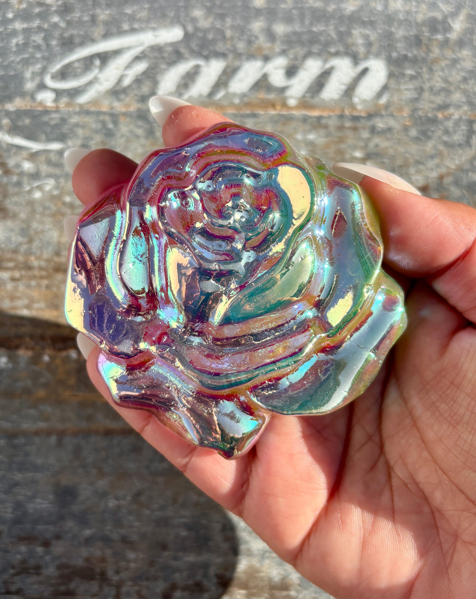 These dazzling crystals combine the natural power of Quartz and Obsidian with a man-made aura treatment that gives them their radiant rainbow sheen. Aura is created by bonding precious metals (such as platinum or titanium) onto the crystal’s surface, producing an iridescent, light-catching glow that enhances both beauty and energy.
