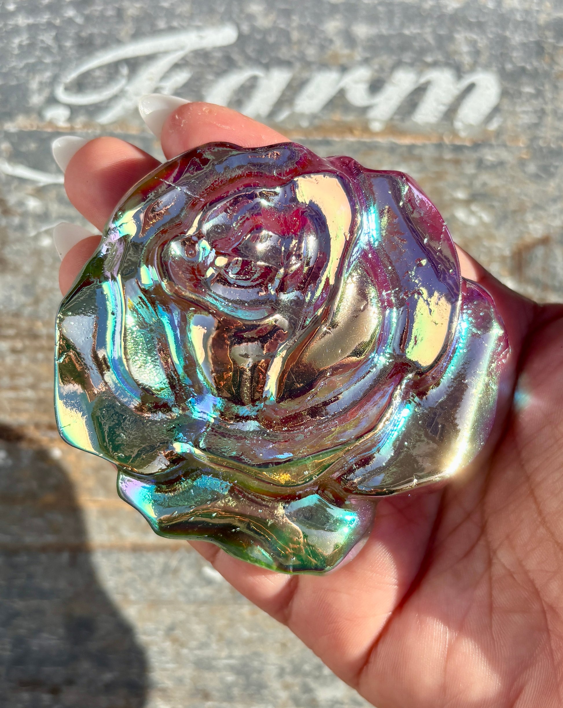 These dazzling crystals combine the natural power of Quartz and Obsidian with a man-made aura treatment that gives them their radiant rainbow sheen. Aura is created by bonding precious metals (such as platinum or titanium) onto the crystal’s surface, producing an iridescent, light-catching glow that enhances both beauty and energy.