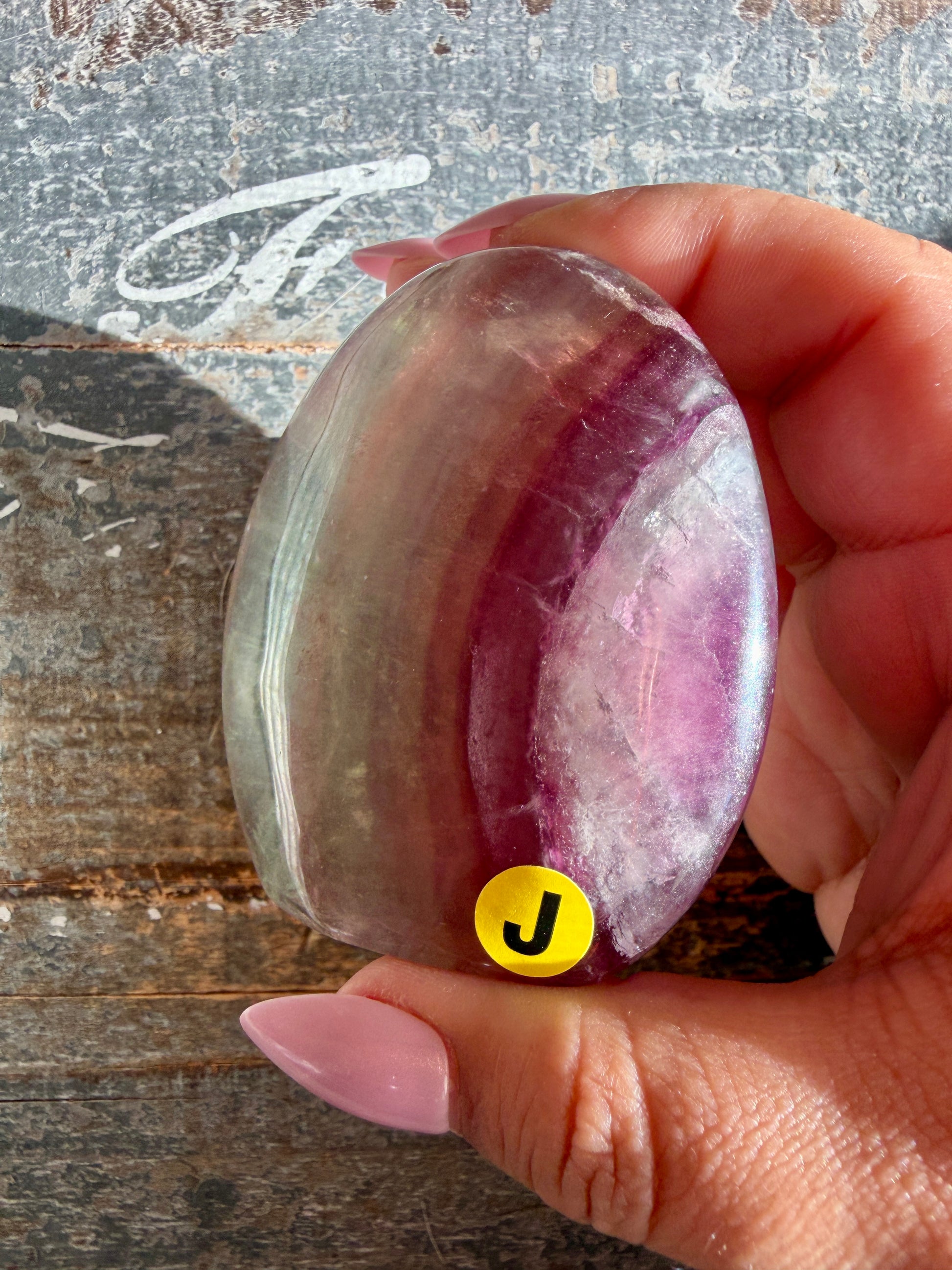 Fluorite is known as a stone of mental clarity, focus, and energetic cleansing. It helps to clear confusion, protect against negative energy, and bring balance to mind and spirit. The unique banding of Candy Fluorite is said to amplify its stabilizing properties, helping to organize scattered thoughts and encourage a sense of flow and harmony.