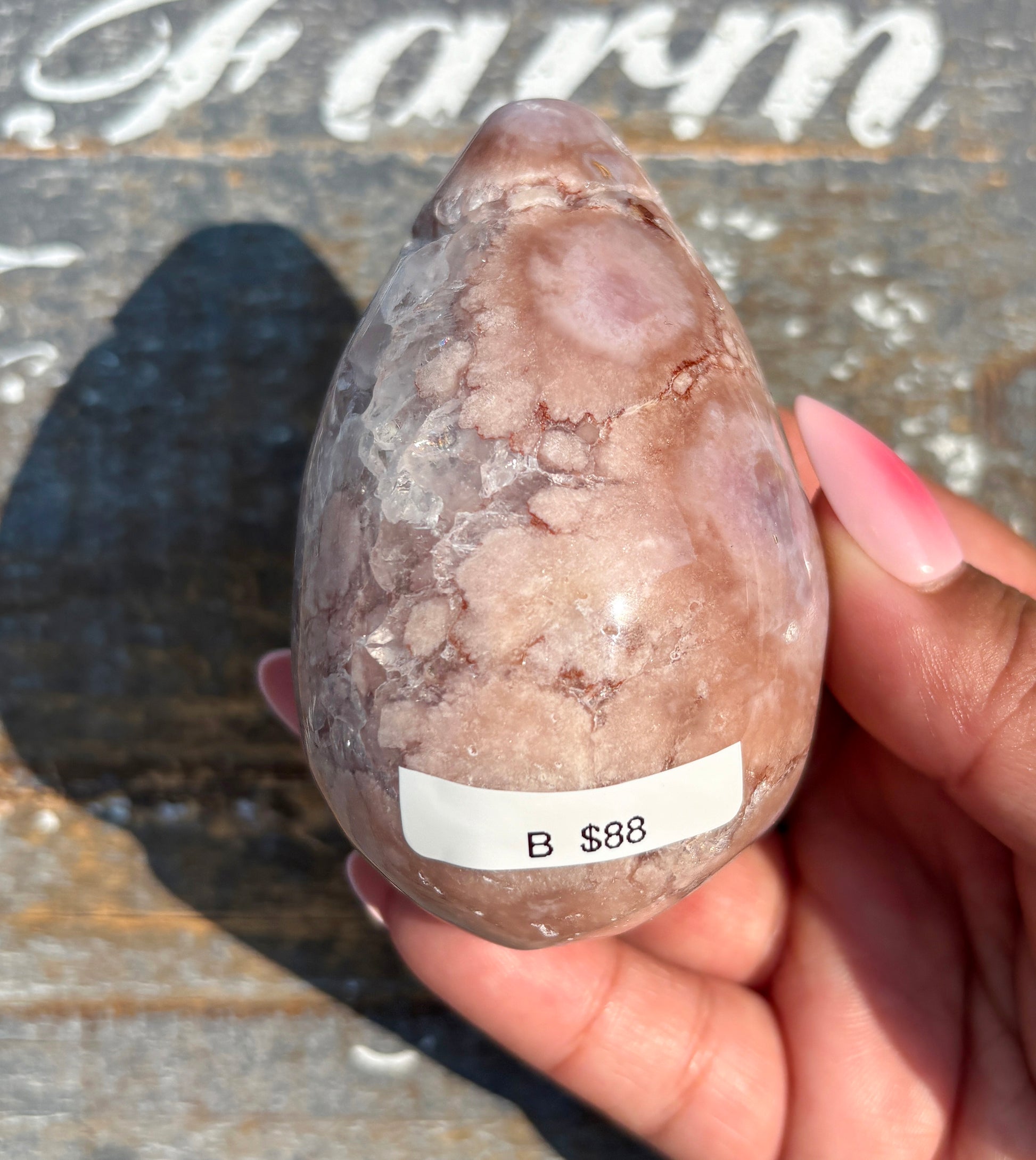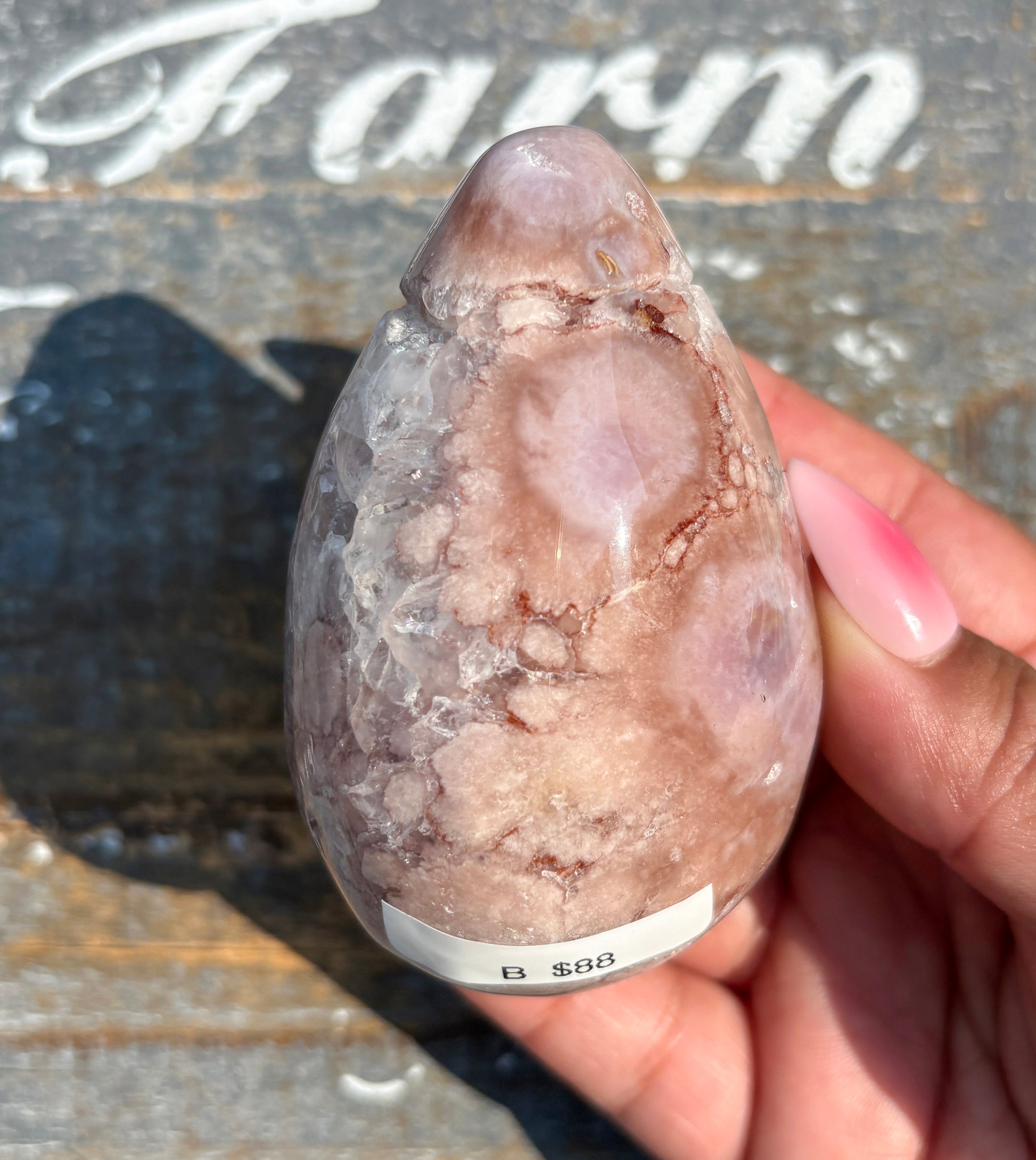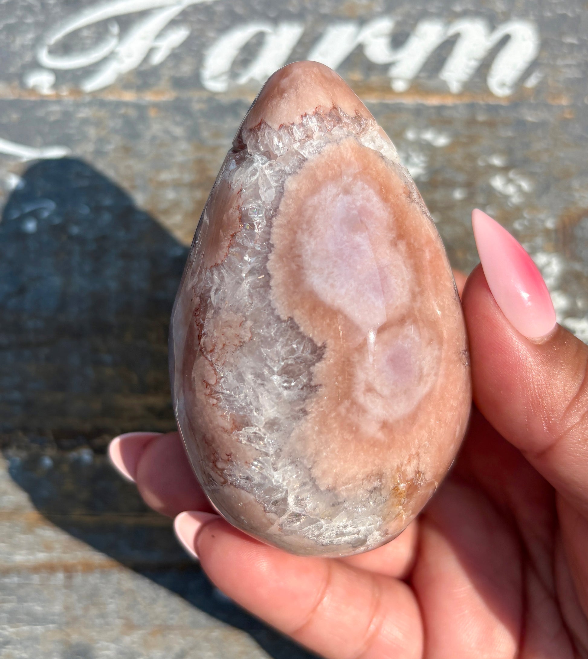 Gorgeous Flower Agate in Pink Amethyst Egg | Opt B