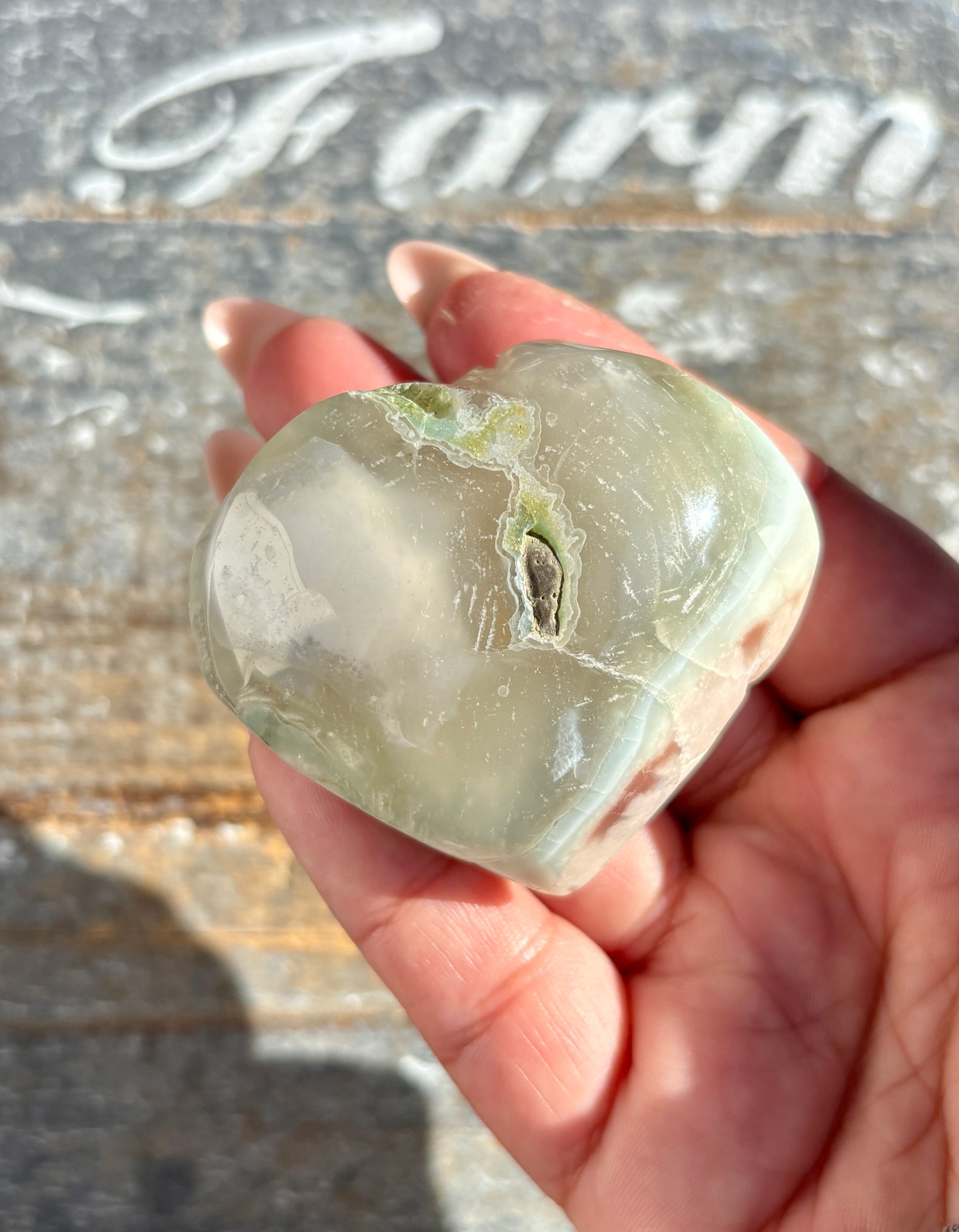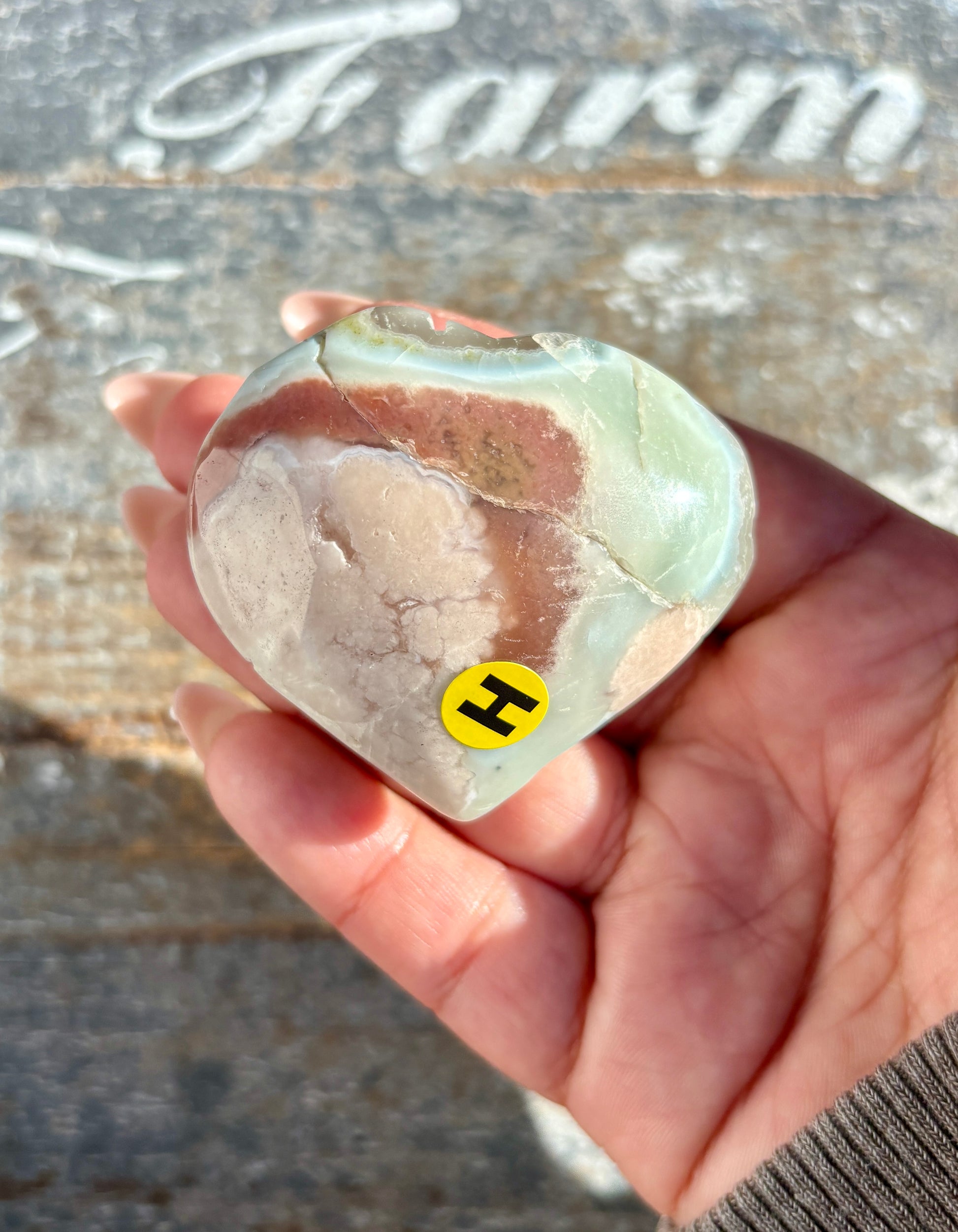 Gorgeous Green FLower Agate Heart from Madagascar | Opt H