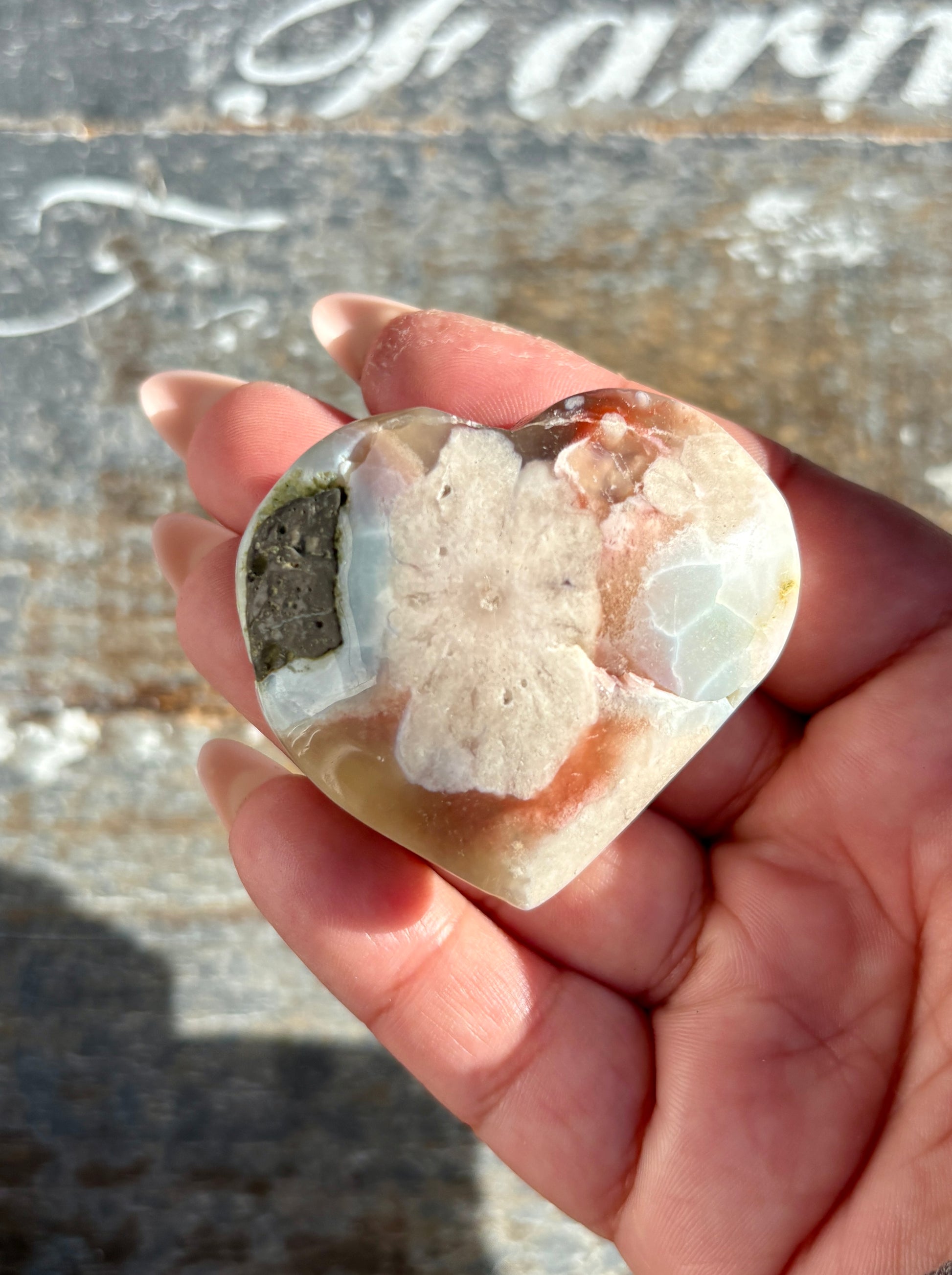 Gorgeous Green Flower Agate Heart from Madagascar | Opt I