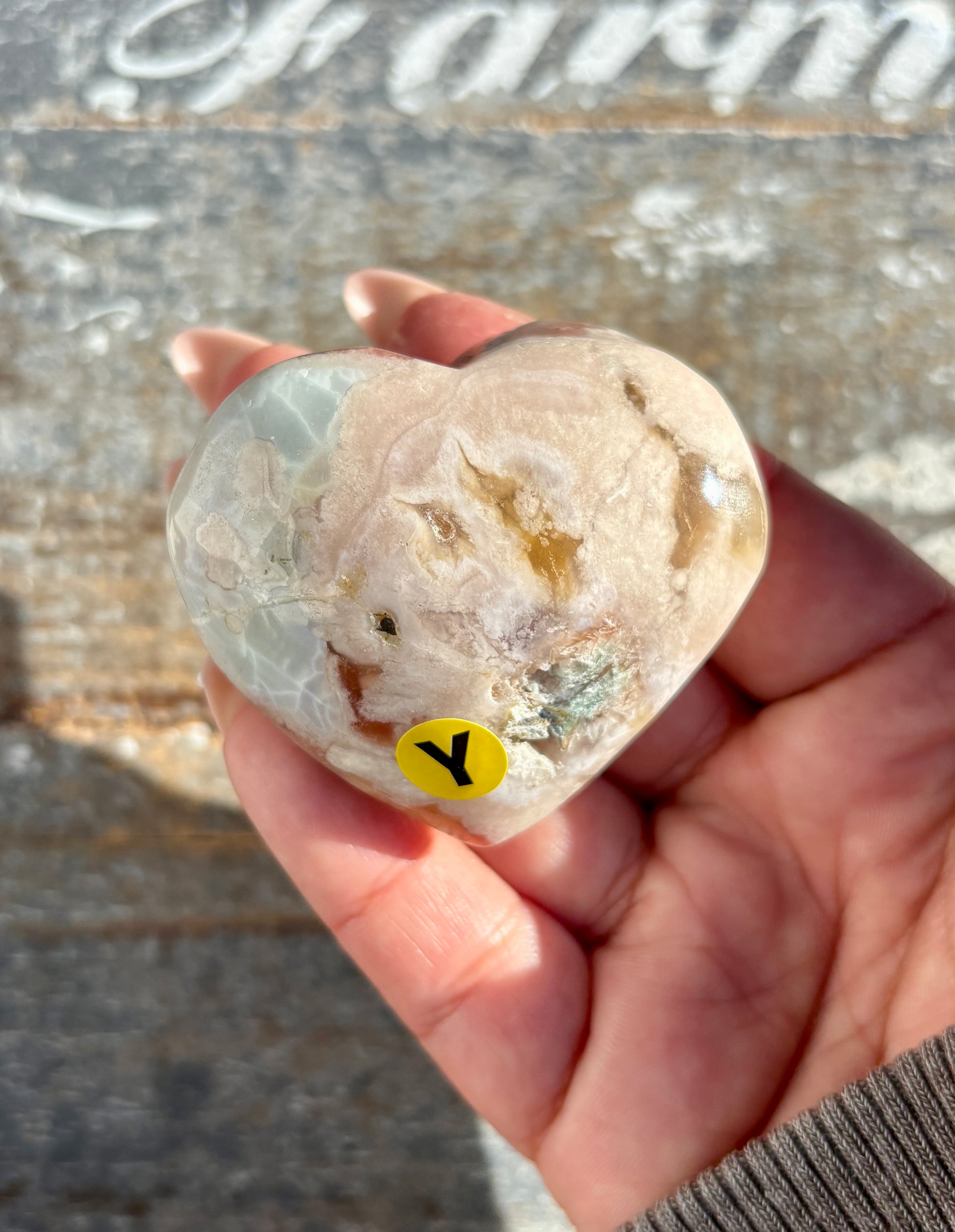Gorgeous Green FLower Agate Heart from Madagascar | Opt Y
