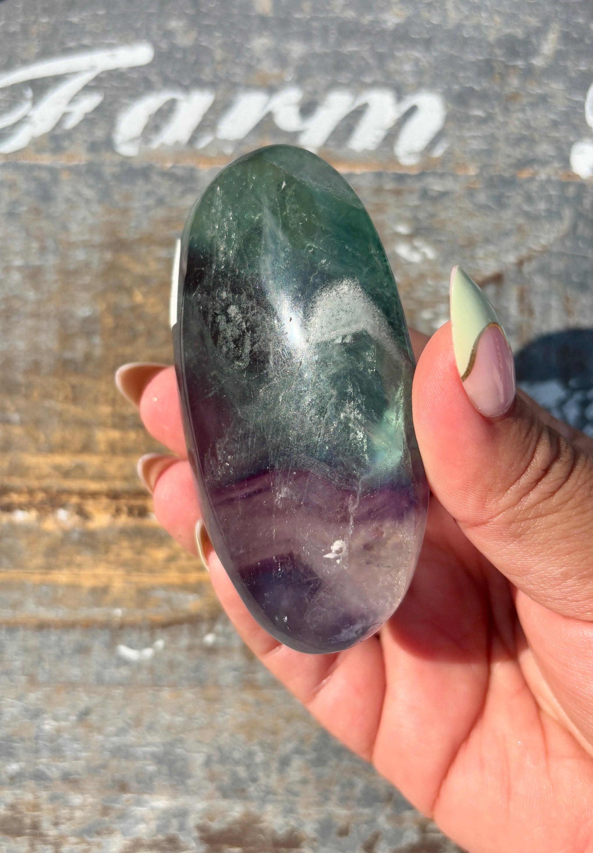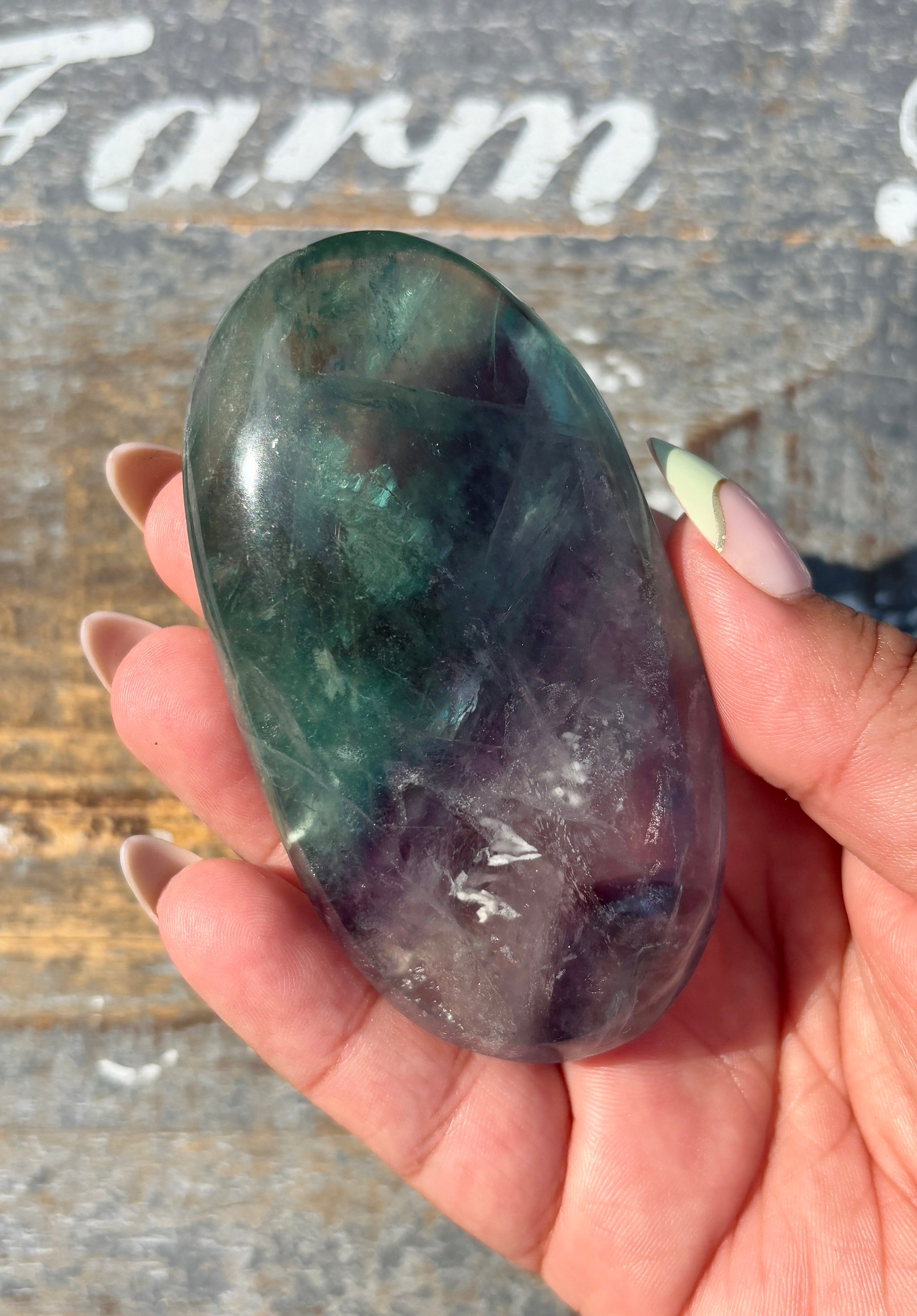 Gorgeous High Grade Rainbow Fluorite Palm Stone | Opt H