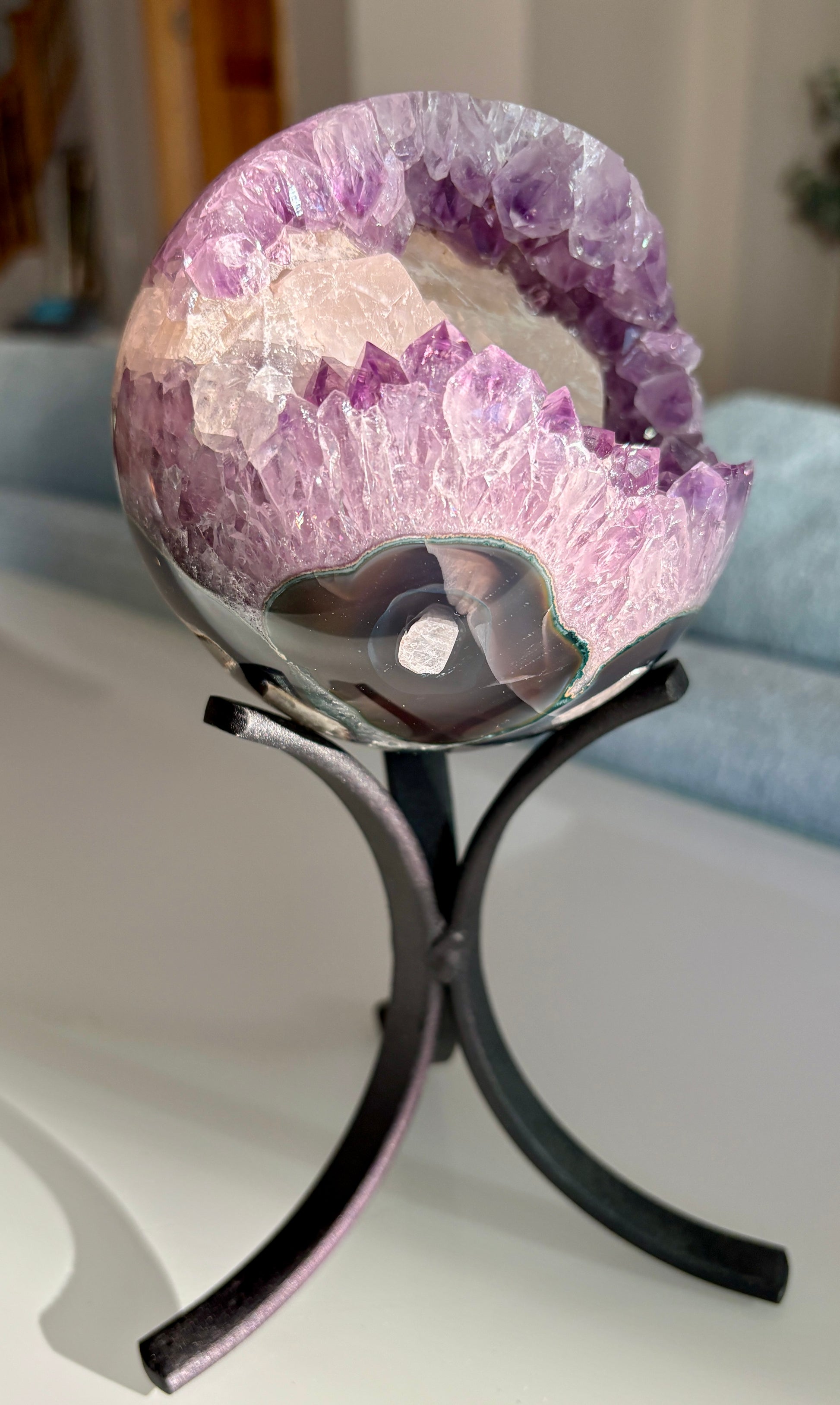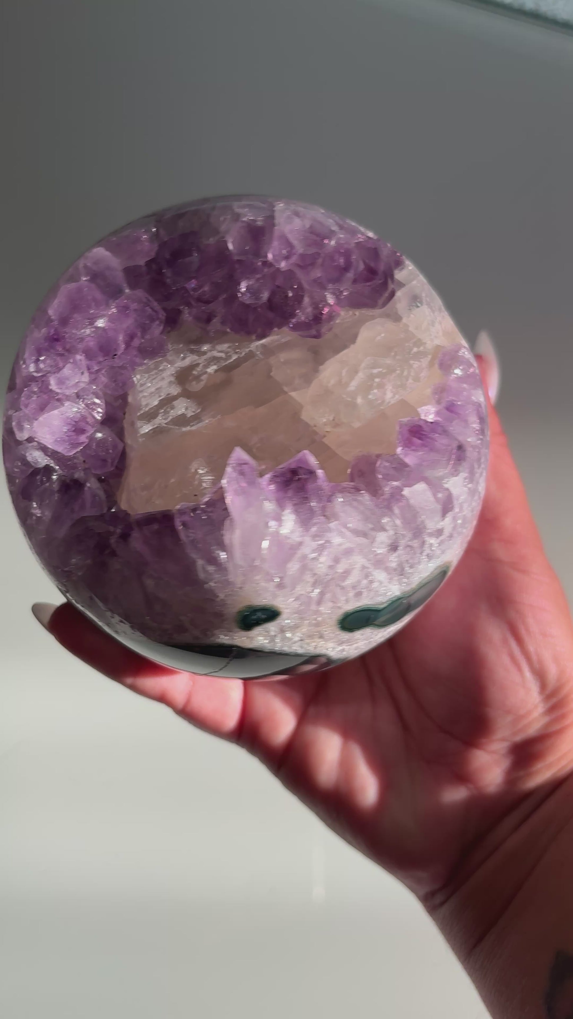 Gorgeous High Quality Amethyst Sphere with Calcite from Brazil