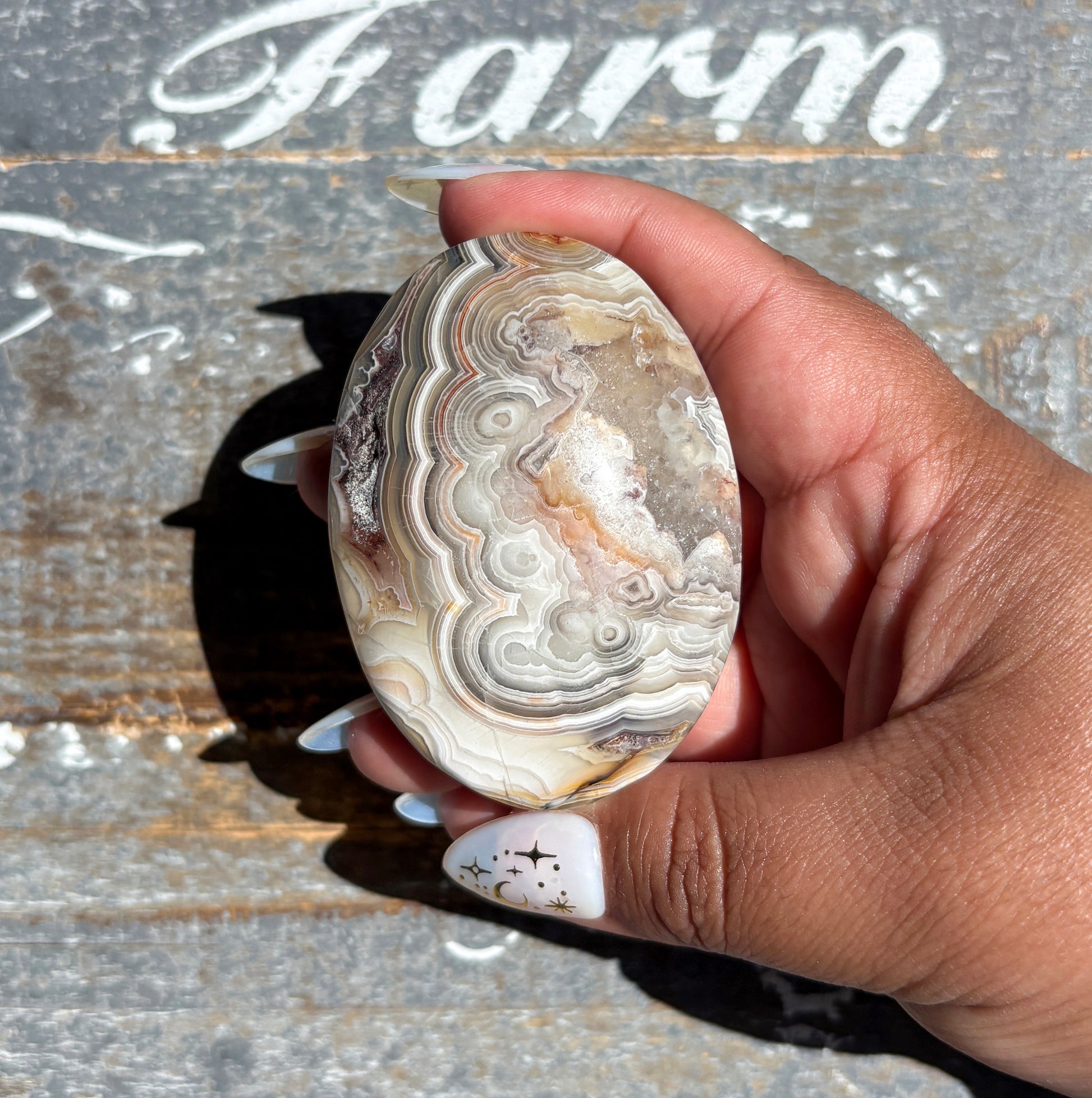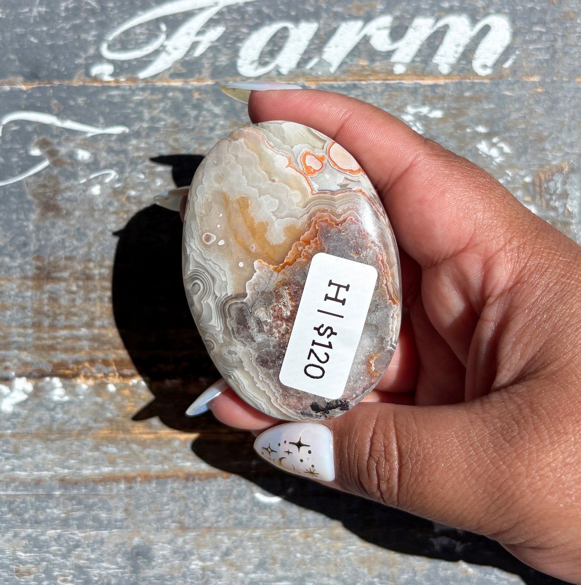 Gorgeous High Quality Crazy Lace Agate Palm Stone from Mexico | H