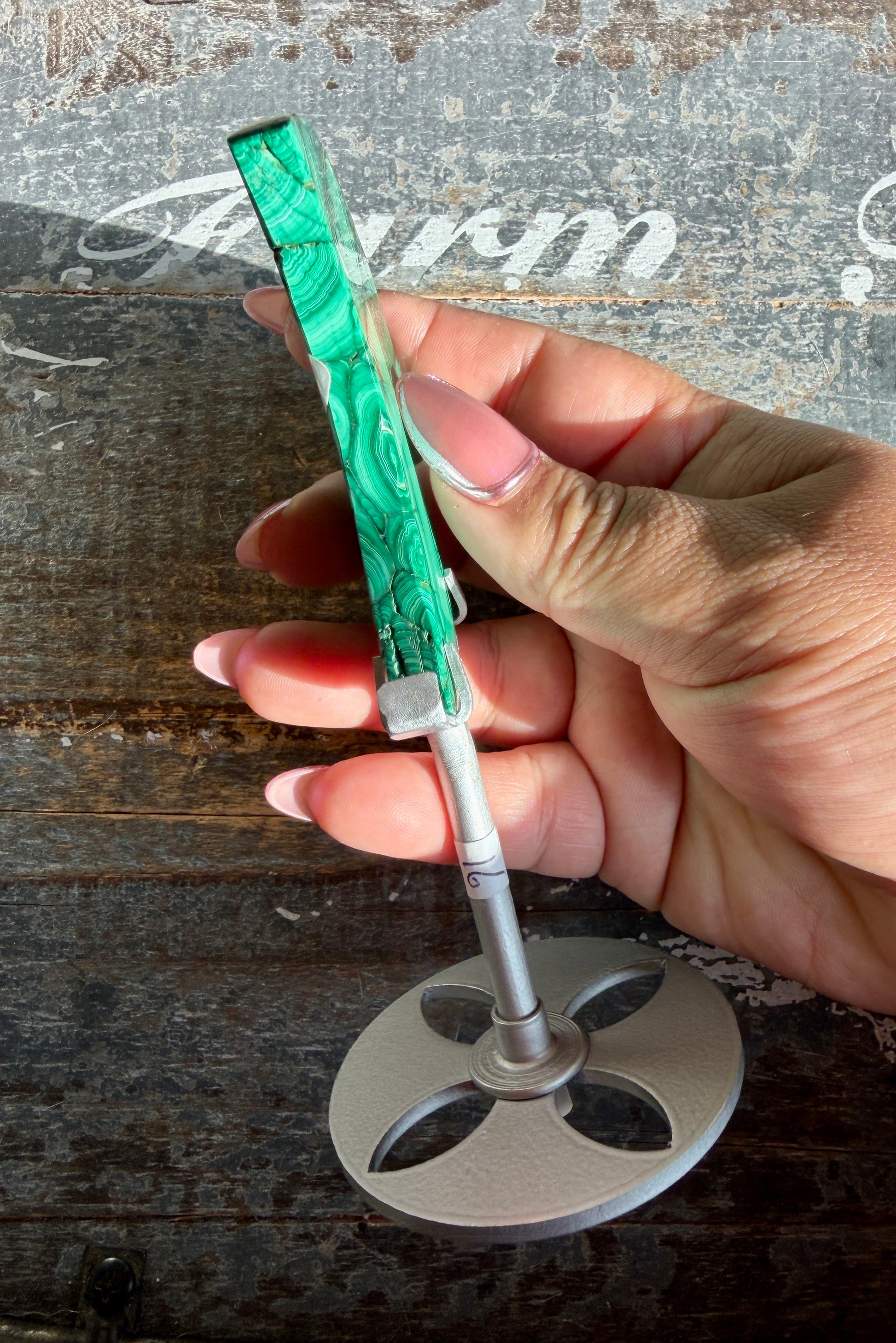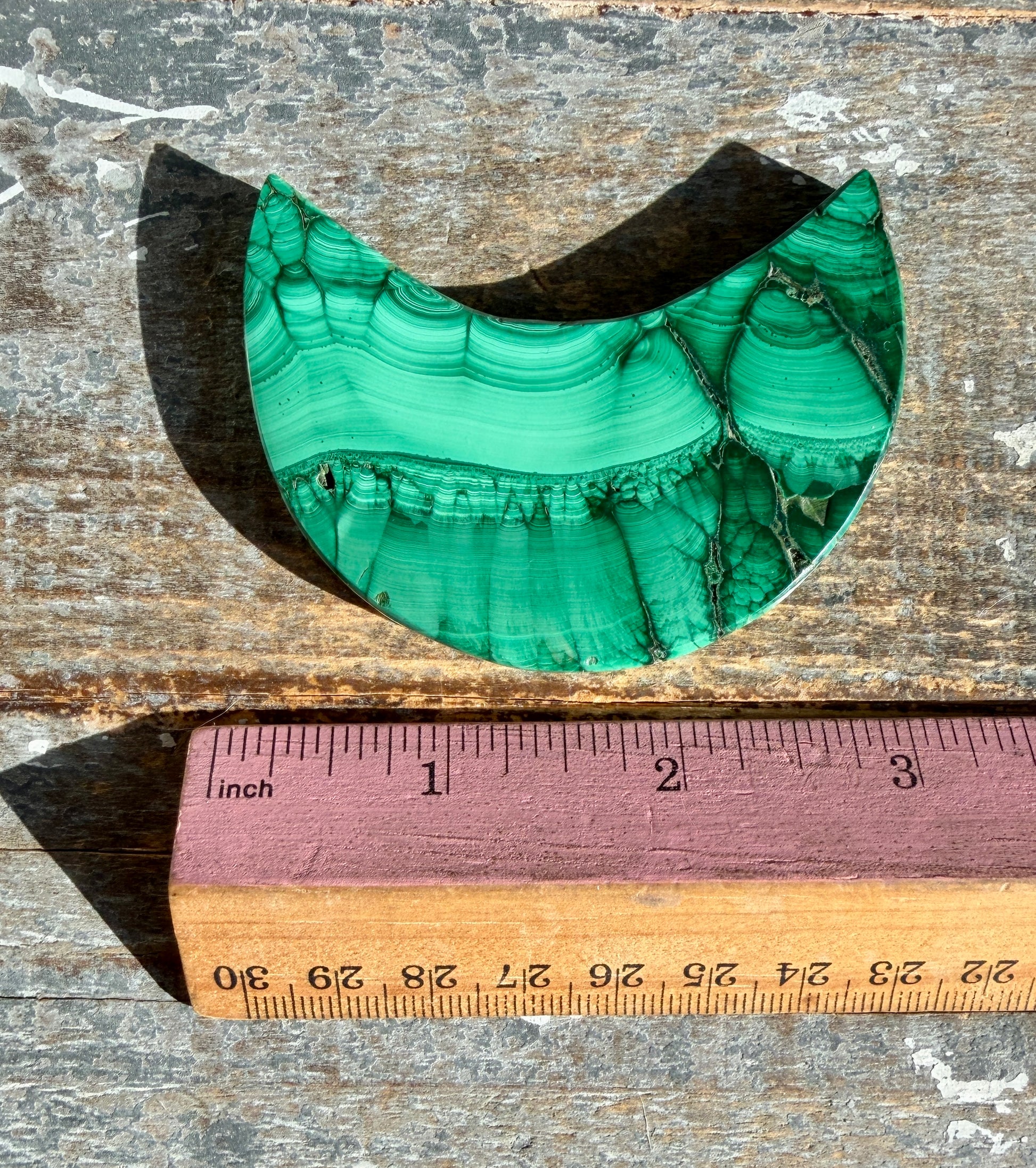 Gorgeous Malachite Moon with Silver Stand | Opt D