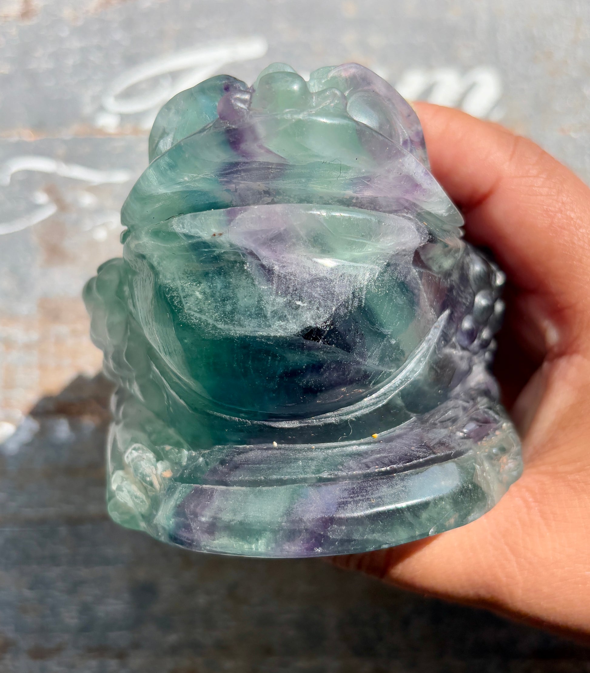 Bring home a piece that combines ancient prosperity symbolism with the calming, harmonizing energy of Fluorite. Perfect for collectors, crystal lovers, or anyone seeking to enhance abundance in their environment.