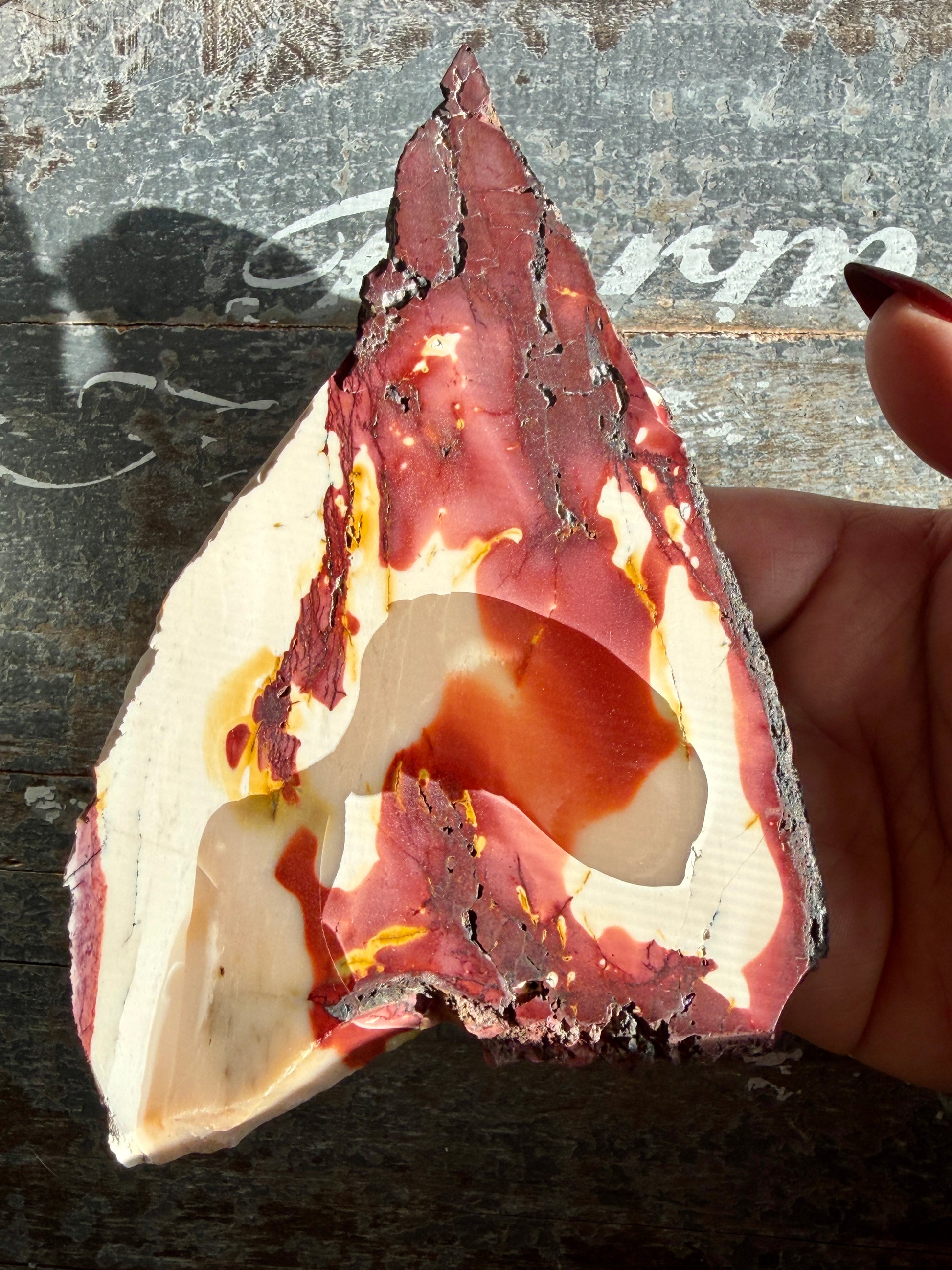 Mookaite, a vibrant form of Australian Jasper, is known for its striking earthy hues — deep reds, warm yellows, and soft creams — each piece reflecting the rugged beauty of the Australian outback where it’s found. This stone carries a grounding yet invigorating energy, helping to stabilize the spirit while encouraging vitality, confidence, and an adventurous outlook.