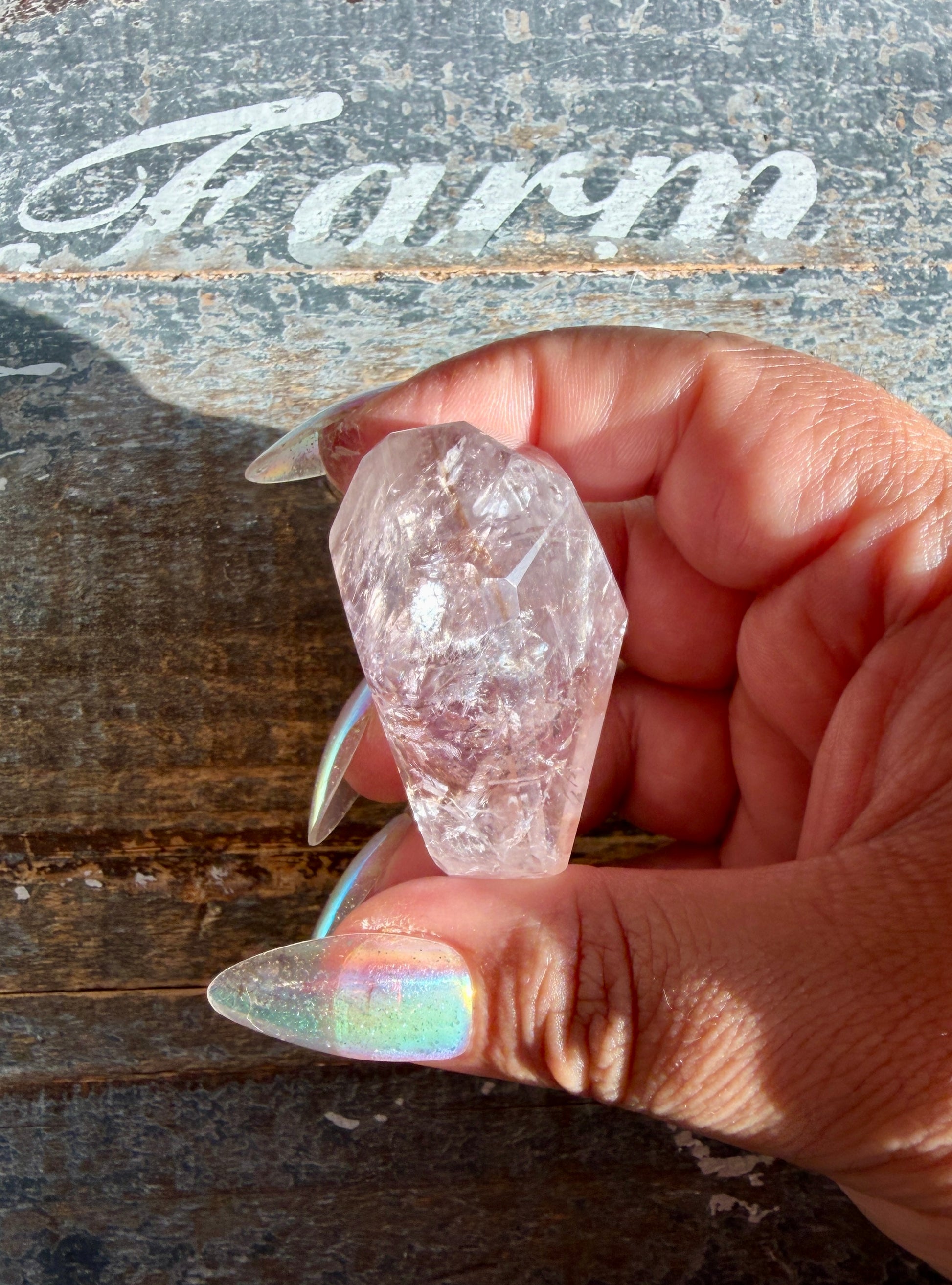 Energetically, this blend carries both the soothing, intuitive energy of Amethyst and the uplifting, spark-like clarity of Powellite.