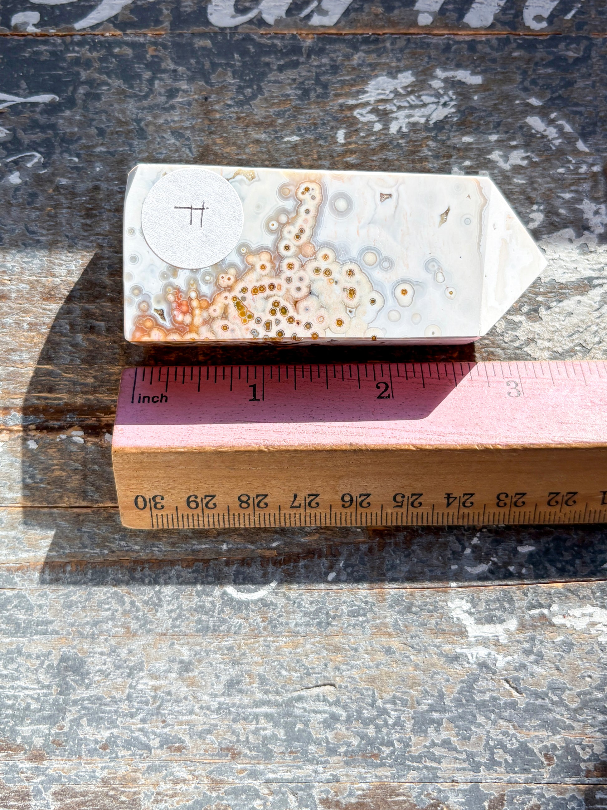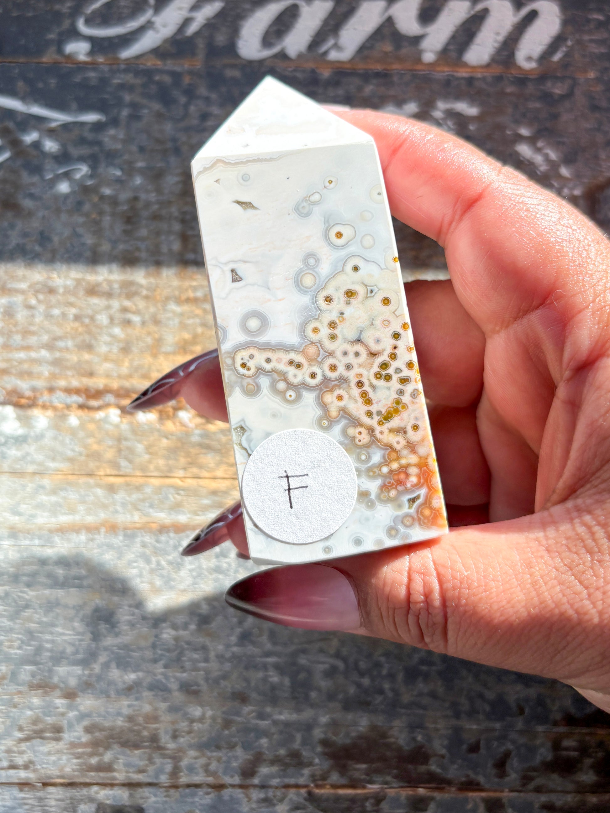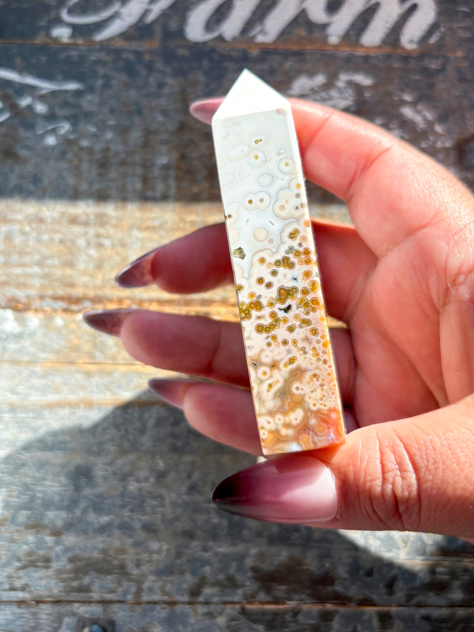 Ocean Jasper of this caliber, with such vibrant hues and well-defined orbs, is becoming increasingly scarce. Perfect for display, meditation, or elevating your crystal collection, this tower is not only a visual masterpiece but also a testament to the rarity and allure of genuine Ocean Jasper.