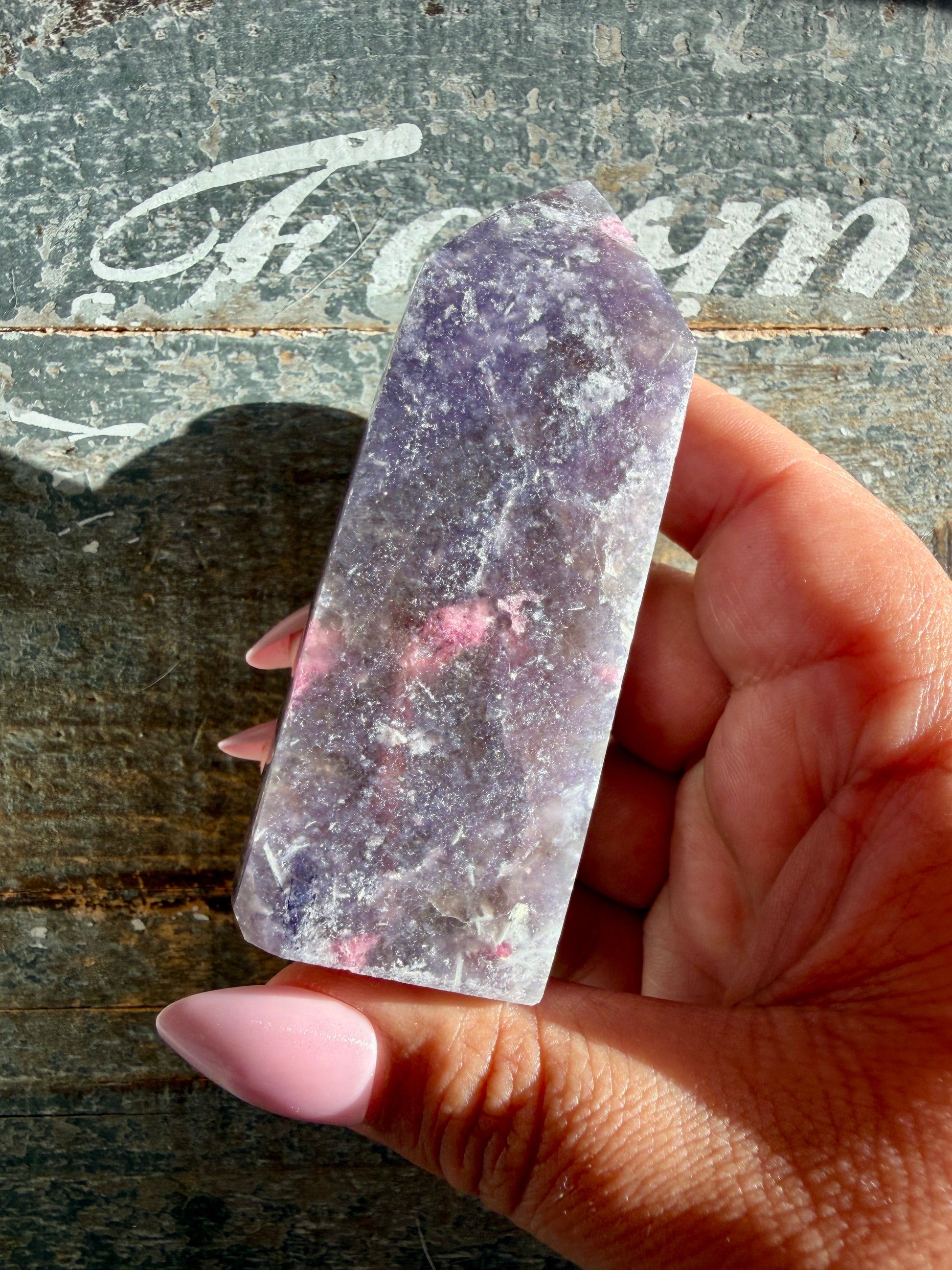 Step into serenity with Lepidolite, also known as Unicorn Stone — a nurturing crystal that blends the calming presence of Lepidolite with the heart-healing energy of Pink Tourmaline and the protective grounding of Smoky Quartz. Its swirls of soft lilac, blush, and earthy tones make it as magical as its name.