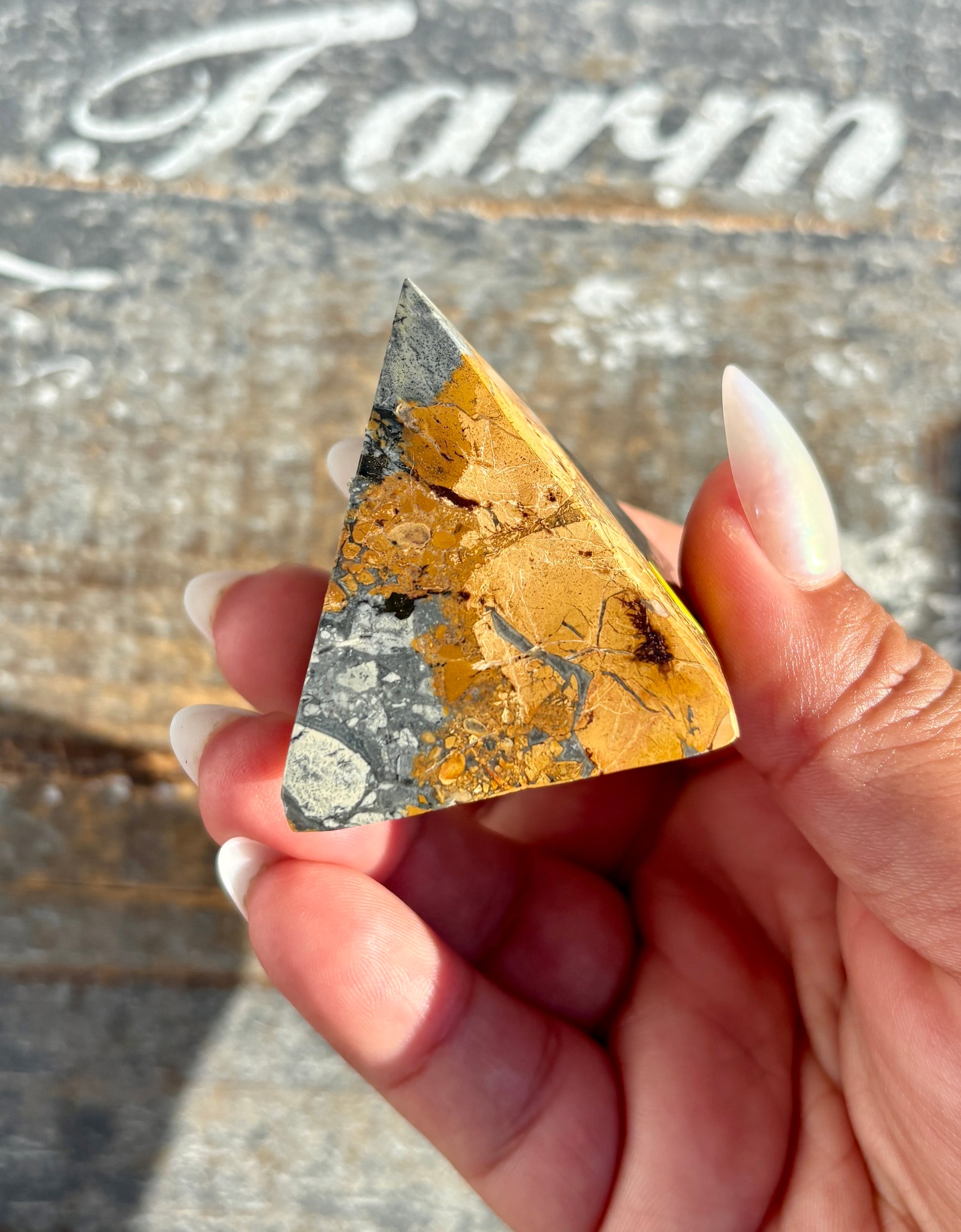 Maligano Jasper, found in Indonesia, is a striking brecciated jasper known for its earthy tones of gold, gray, cream, and rust, often laced with unique patterns that resemble miniature landscapes. Each piece is a natural work of art, showing the beauty of the earth’s transformation over time.