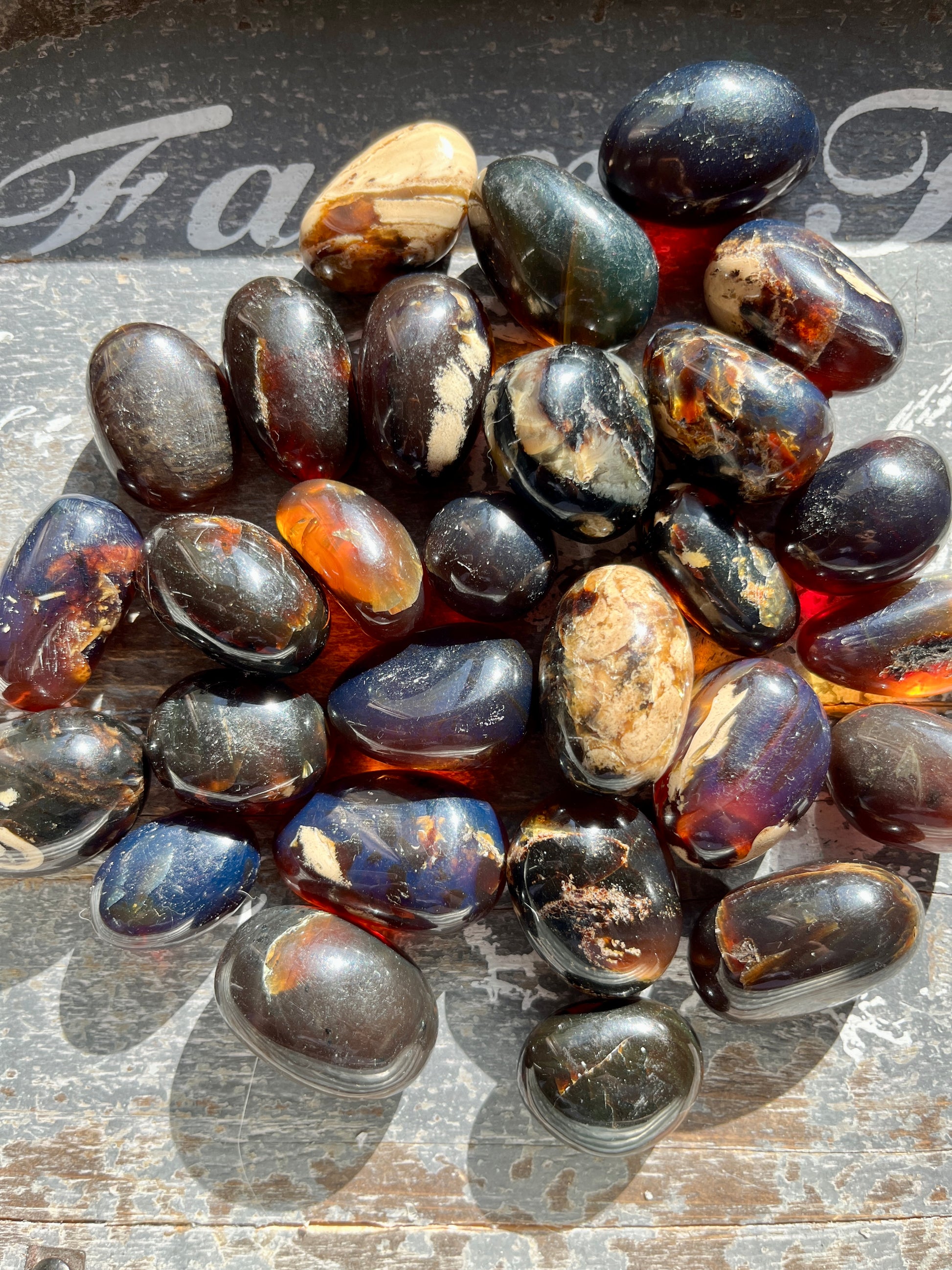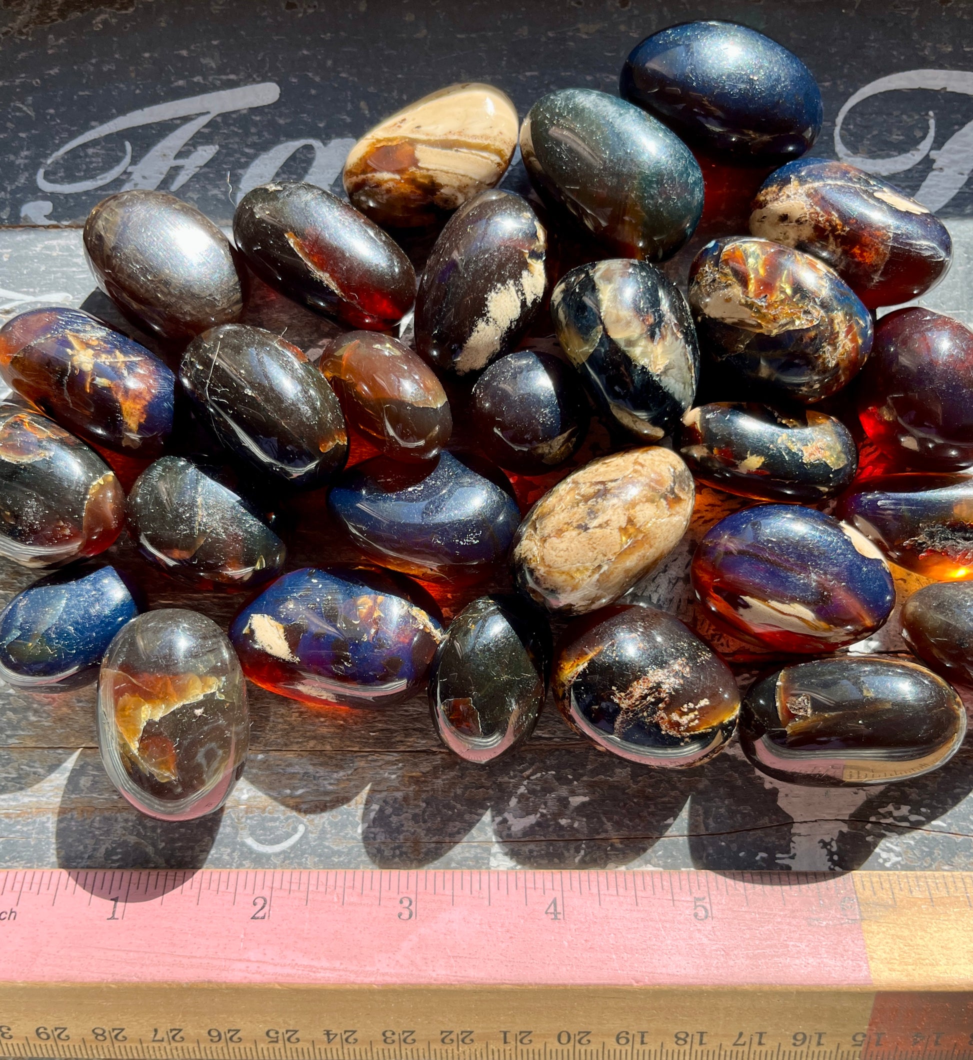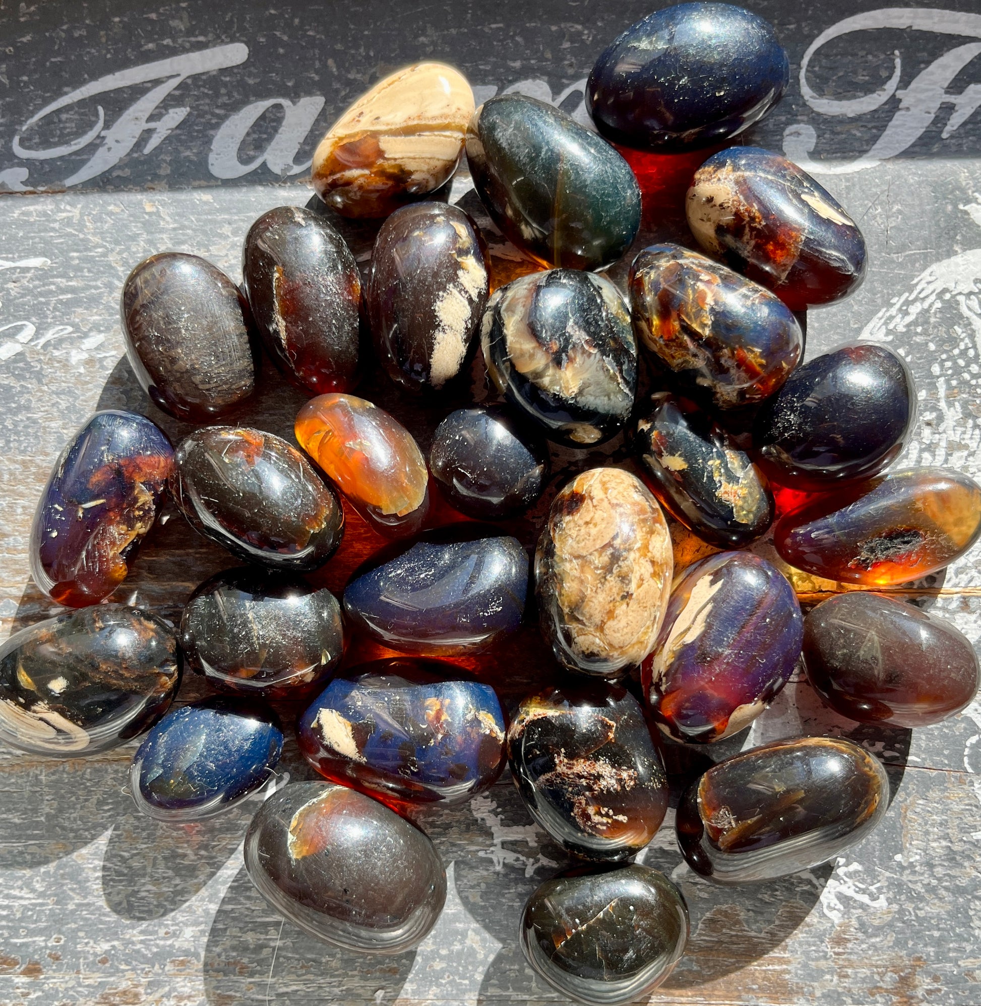 One (1) Gorgeous Blue/Red Amber Tumble from Indonesia