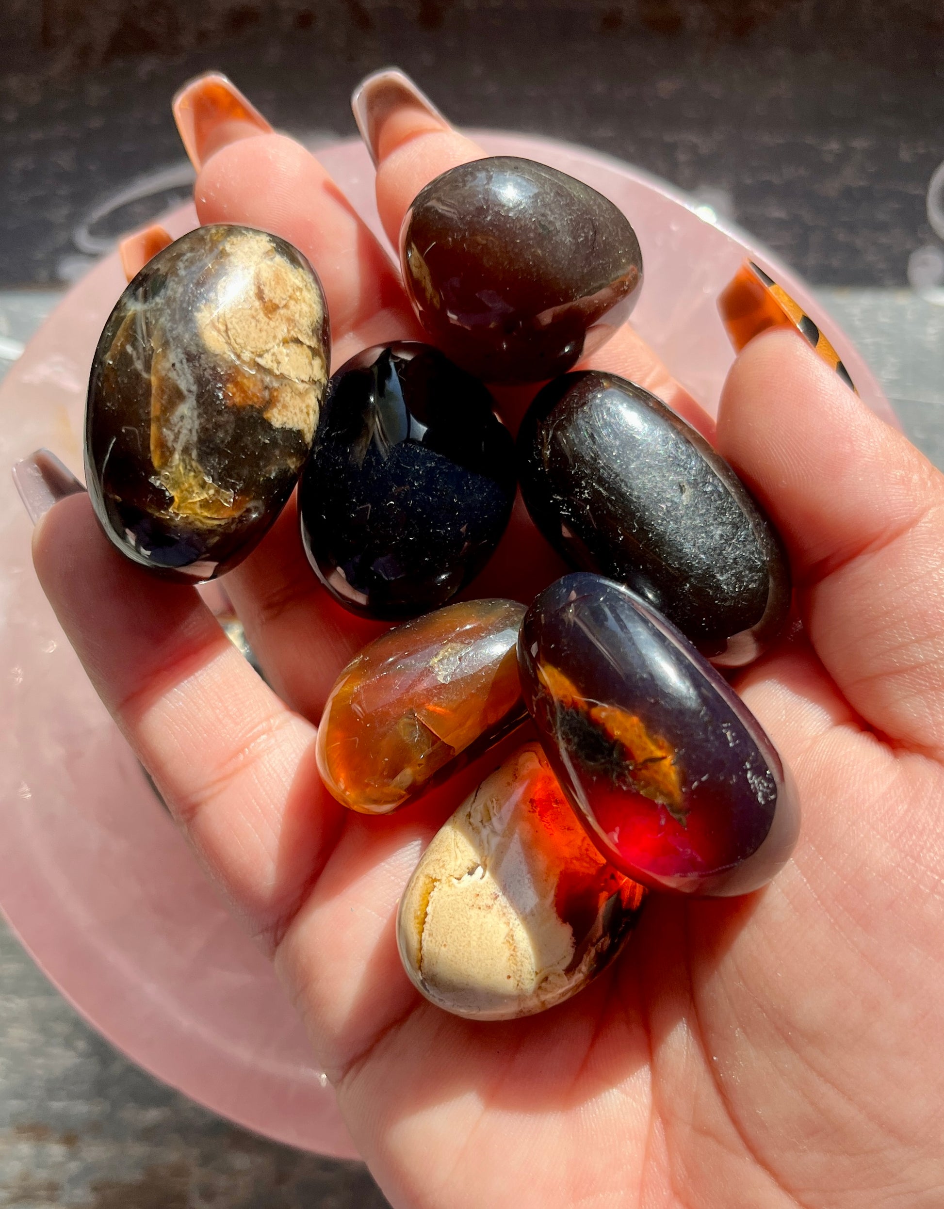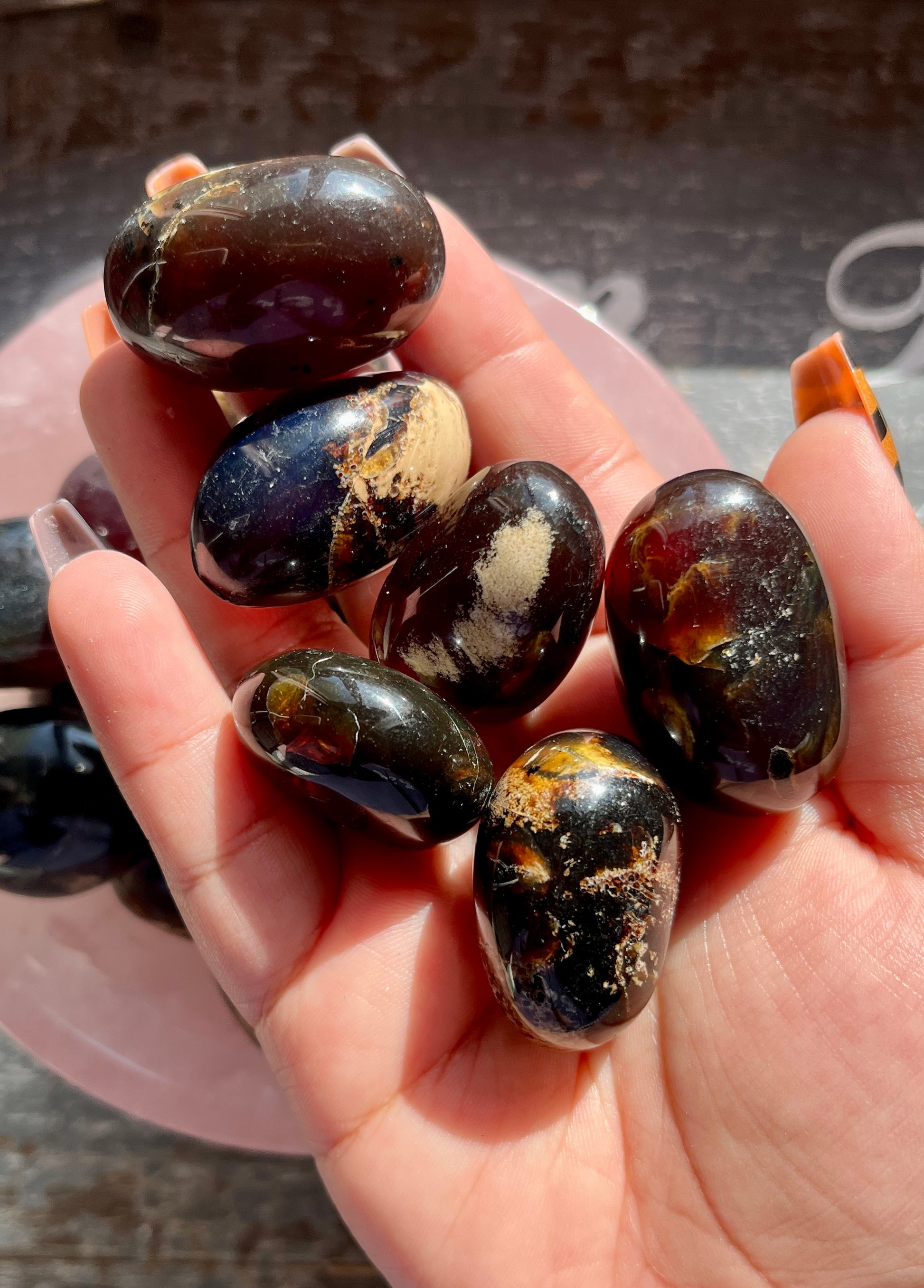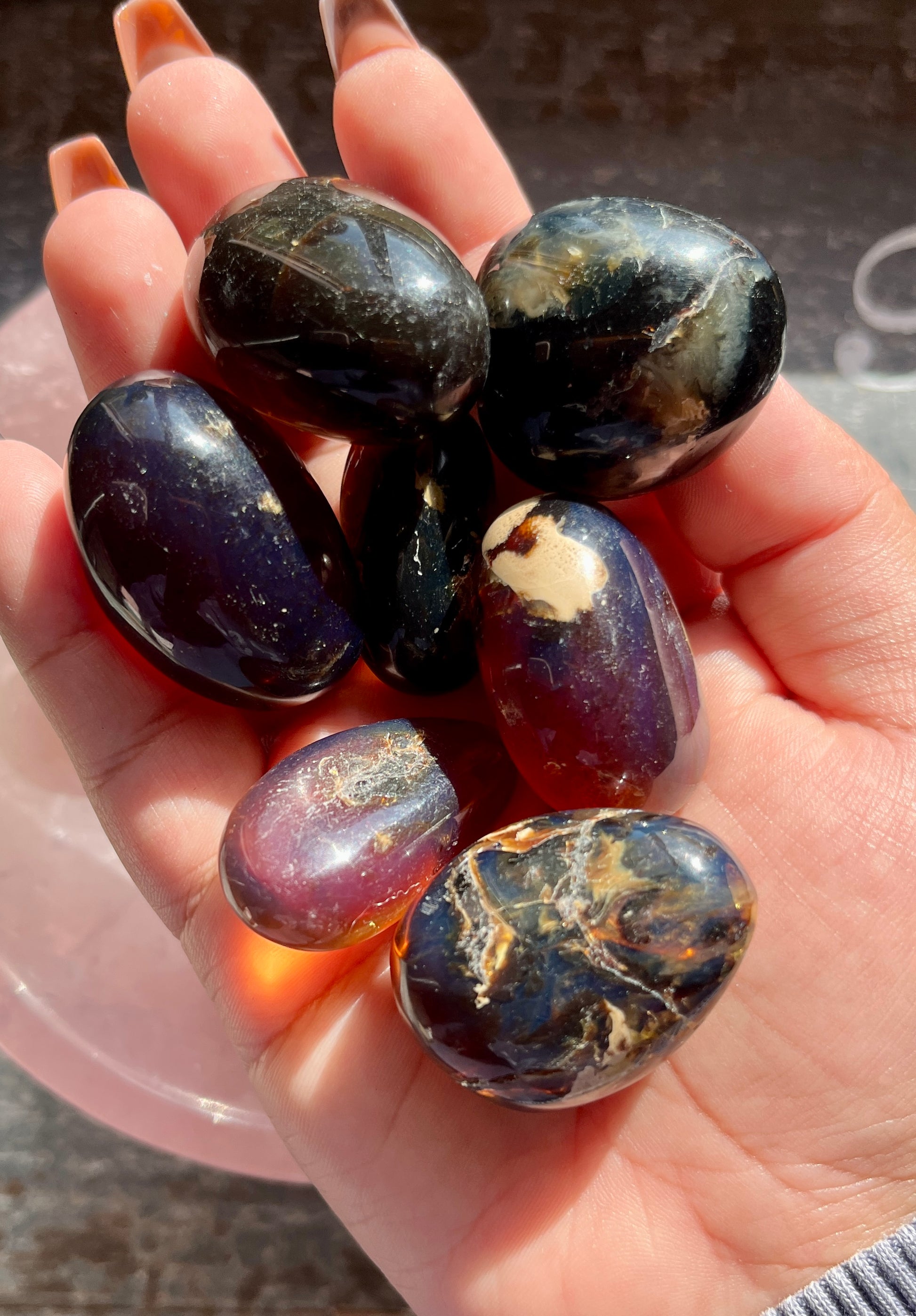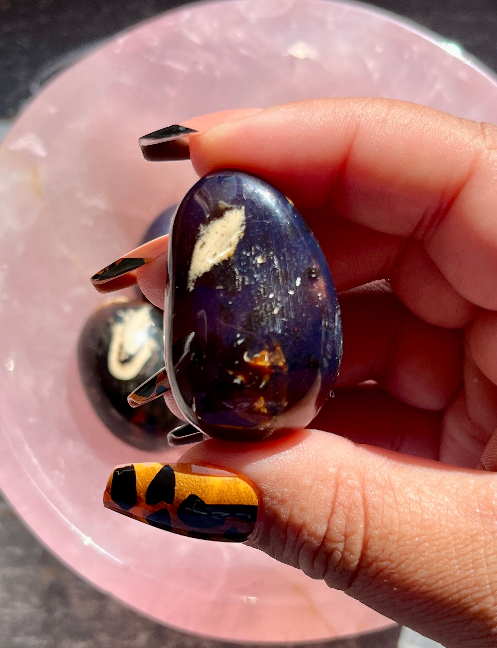 One (1) Gorgeous Blue/Red Amber Tumble from Indonesia