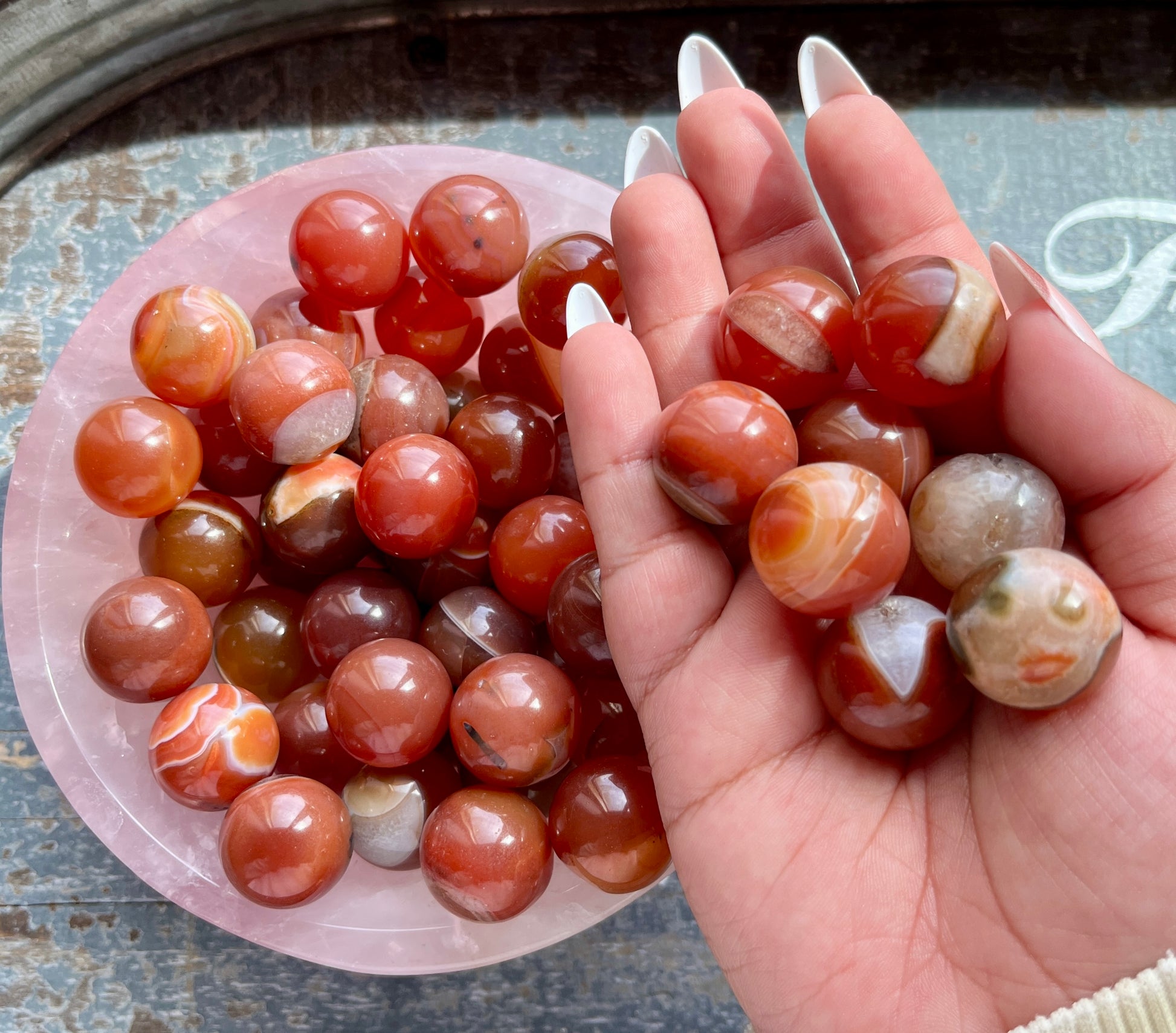 Mini sphere are selected at random, some have druzy, quartz pockets or banding!