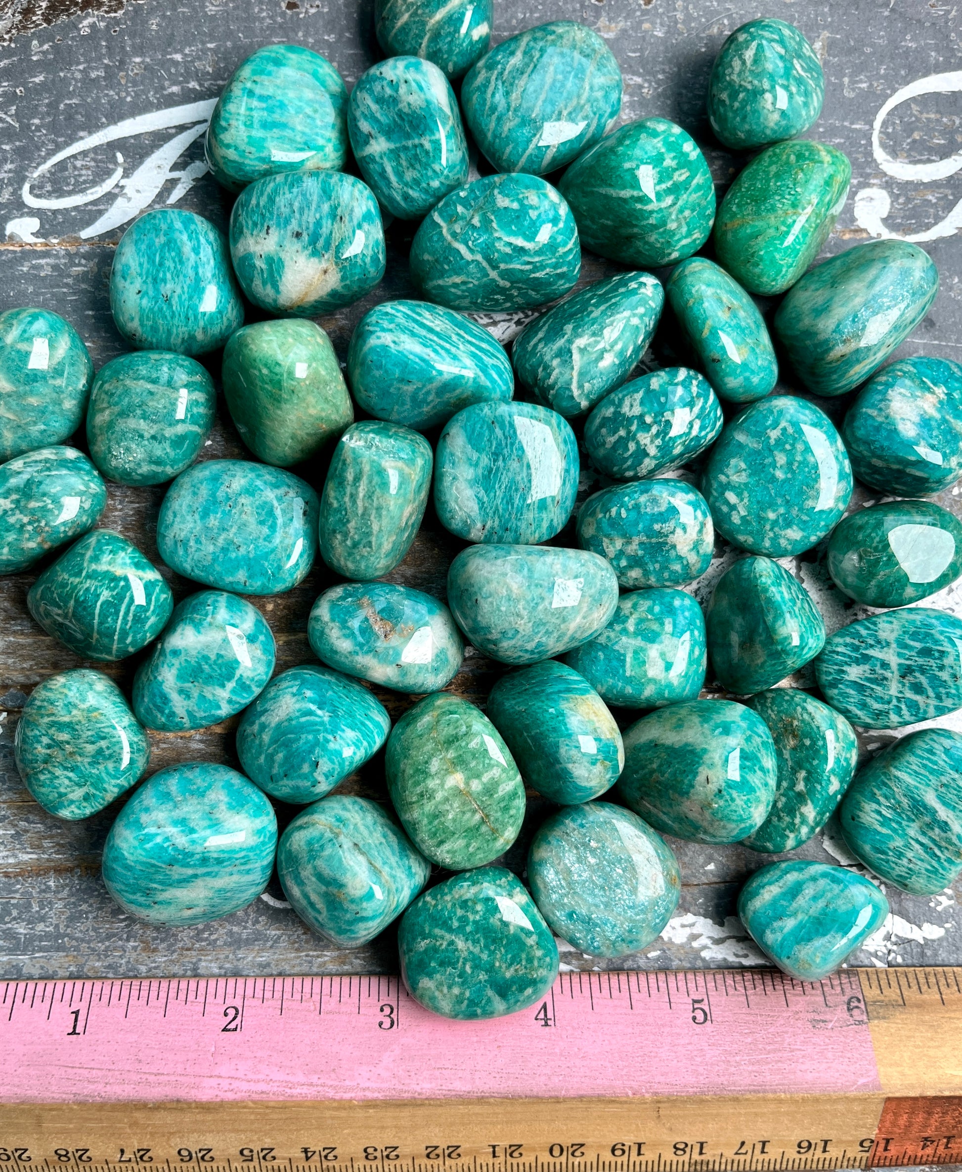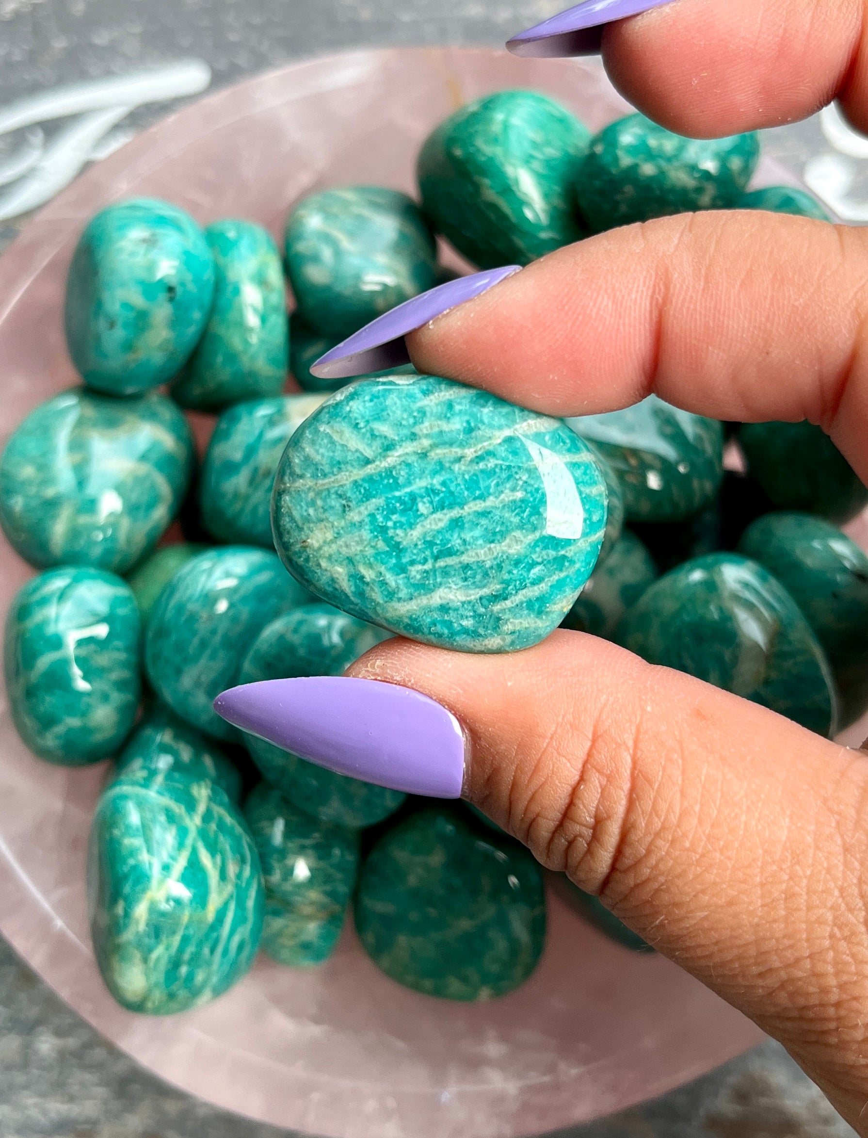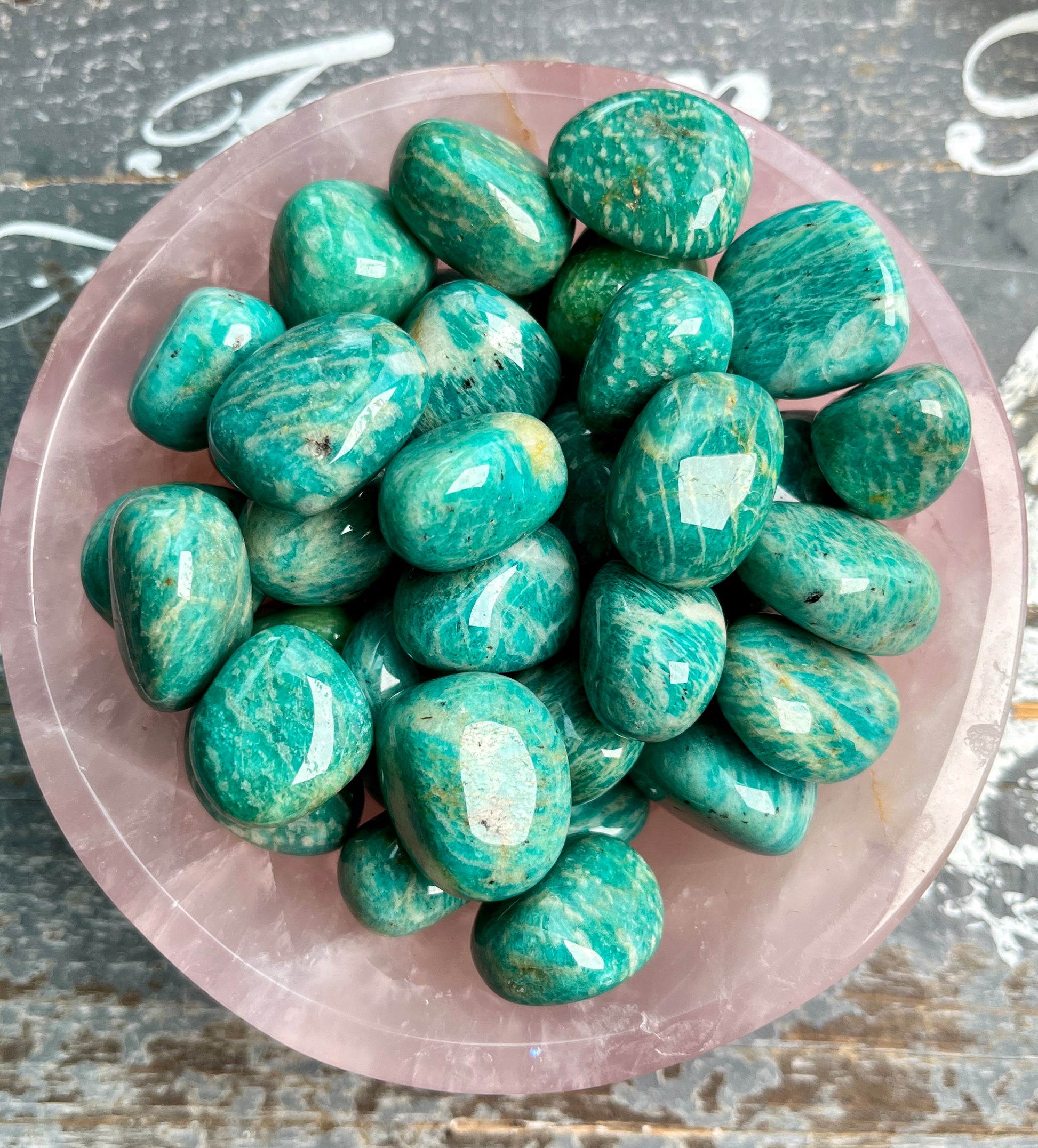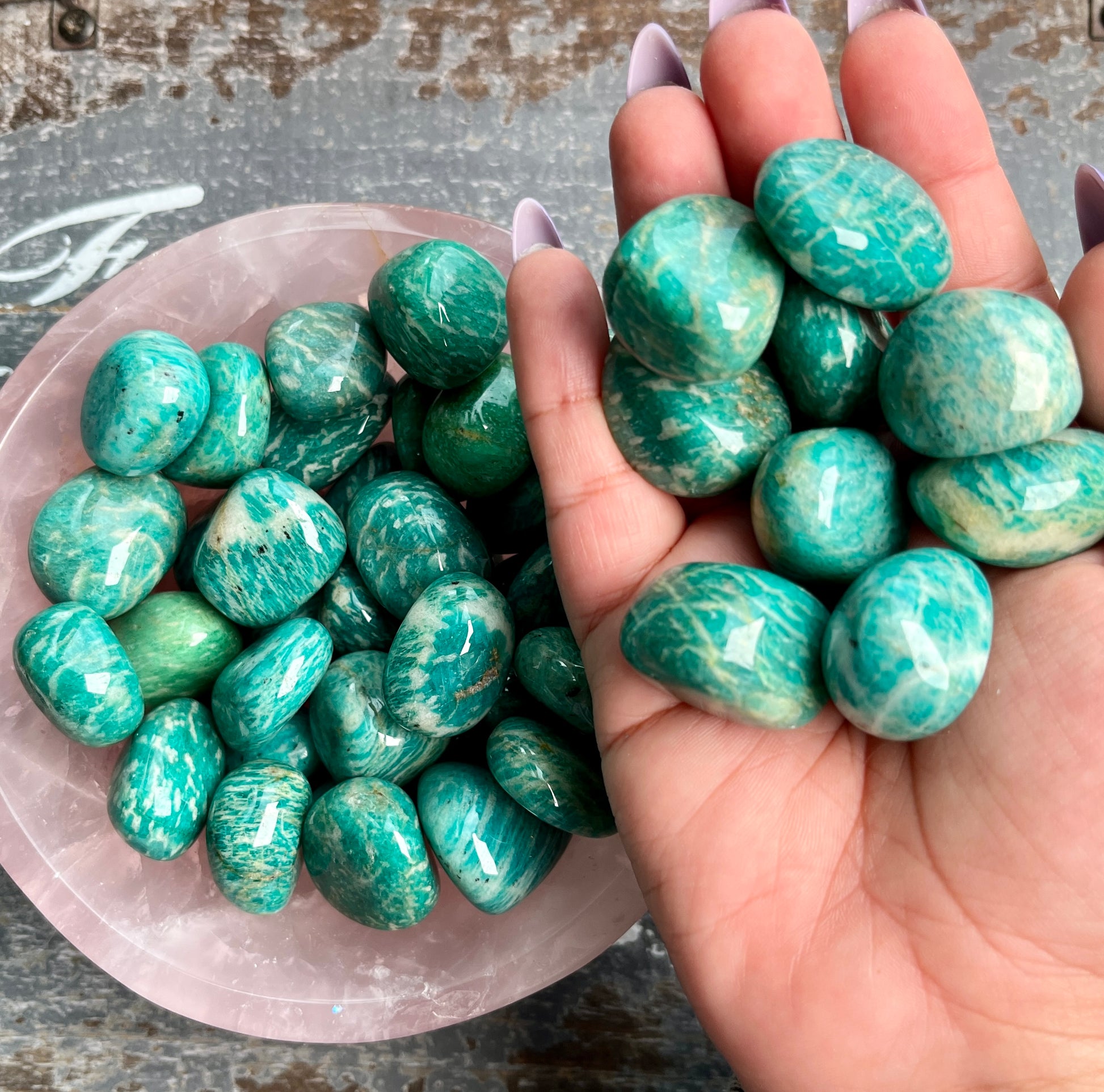 This gorgeous high grade Amazonite tumble is the perfect addition to any crystal collection. With its stunning color and natural patterns, it is not only visually appealing but also believed to aid in money manifestation. Add this powerful crystal to your daily routine and manifest abundance with ease.