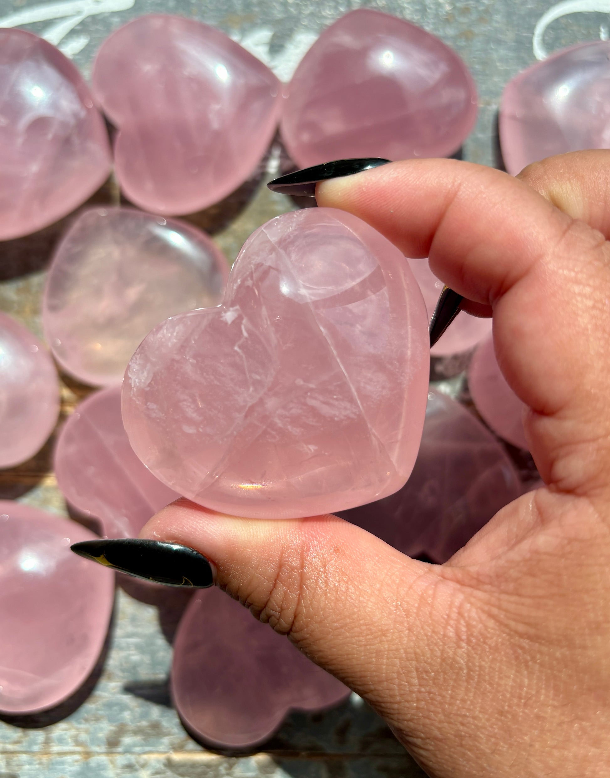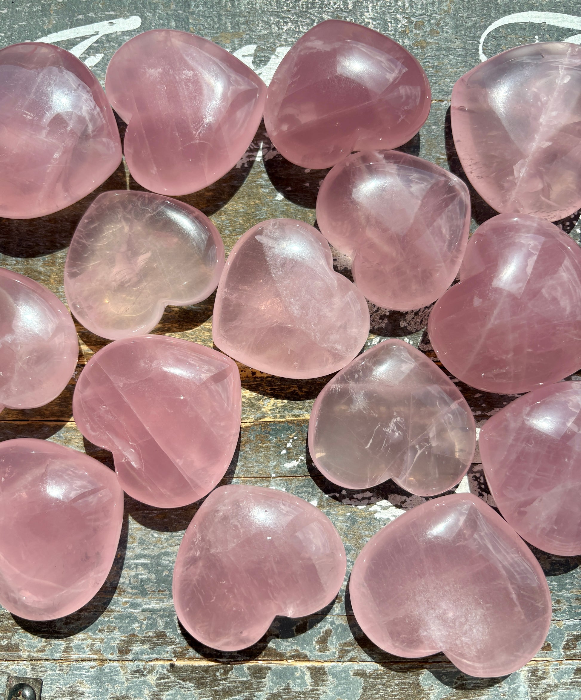 These enchanting Rose Quartz hearts from Madagascar shimmer with a rare star-like flash, adding a magical glow to their soft pink hue. Known as the stone of unconditional love, Rose Quartz supports emotional healing, self-love, and heart chakra activation. The star flash adds an extra layer of radiant energy, making these hearts powerful companions for deep compassion, trust, and inner peace. Perfect for meditation, gifting, or simply bringing loving energy into your space.