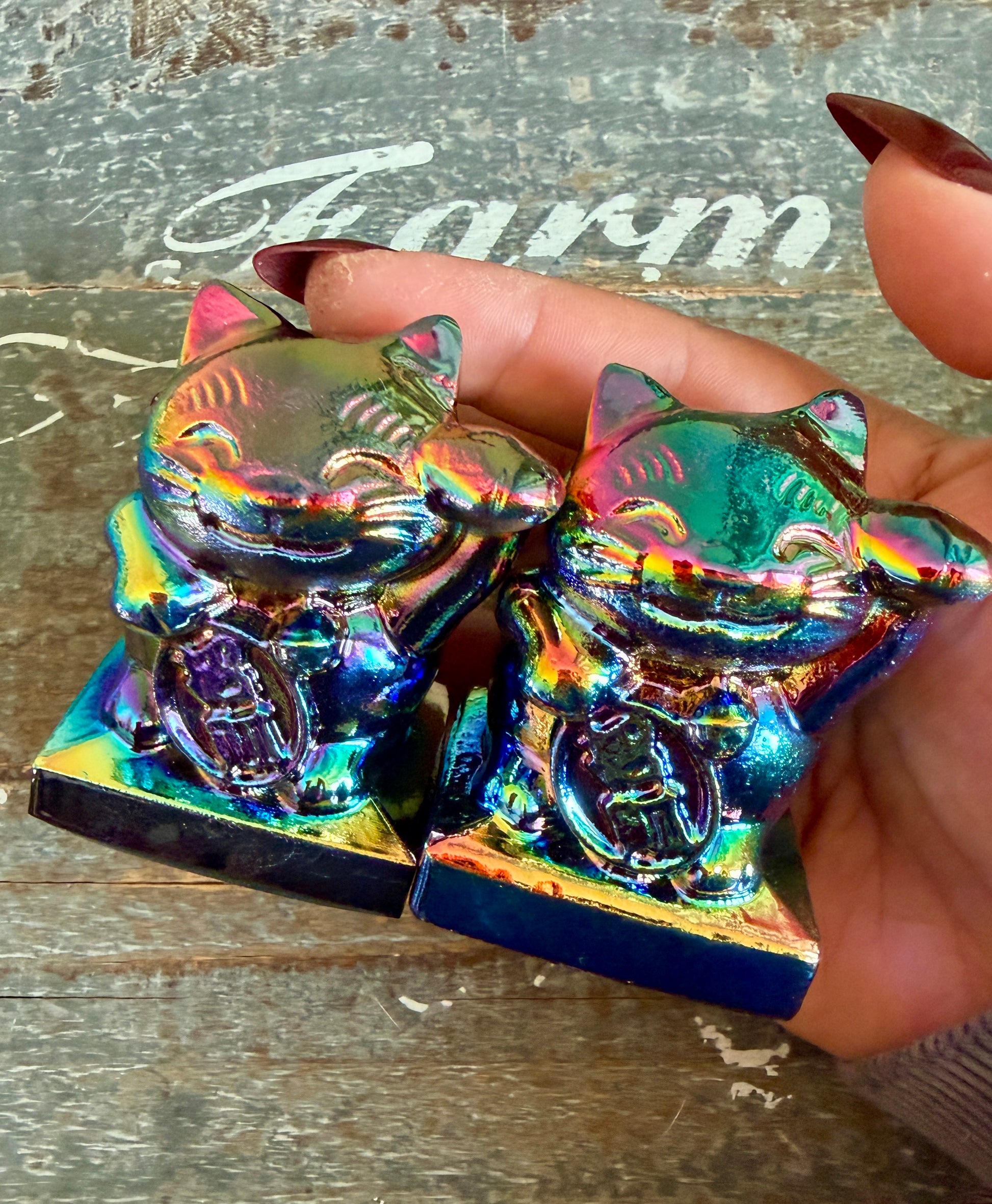 A powerful blend of grounding volcanic glass and rainbow aura energy, Obsidian with Titanium Aura combines deep protection with vibrant, high-frequency color. Each piece begins as natural Obsidian and is then bonded with Titanium to create its electric iridescent sheen.
