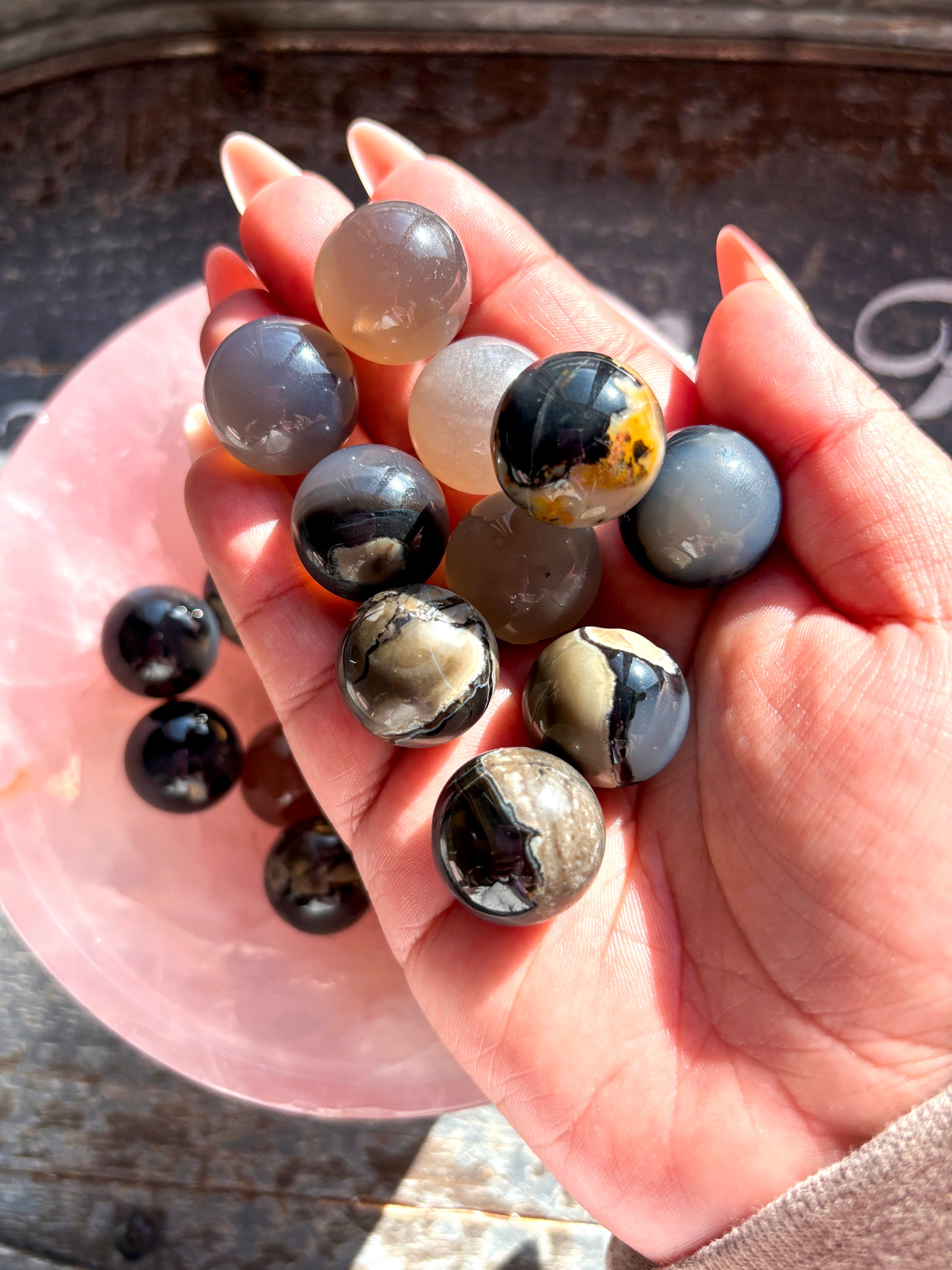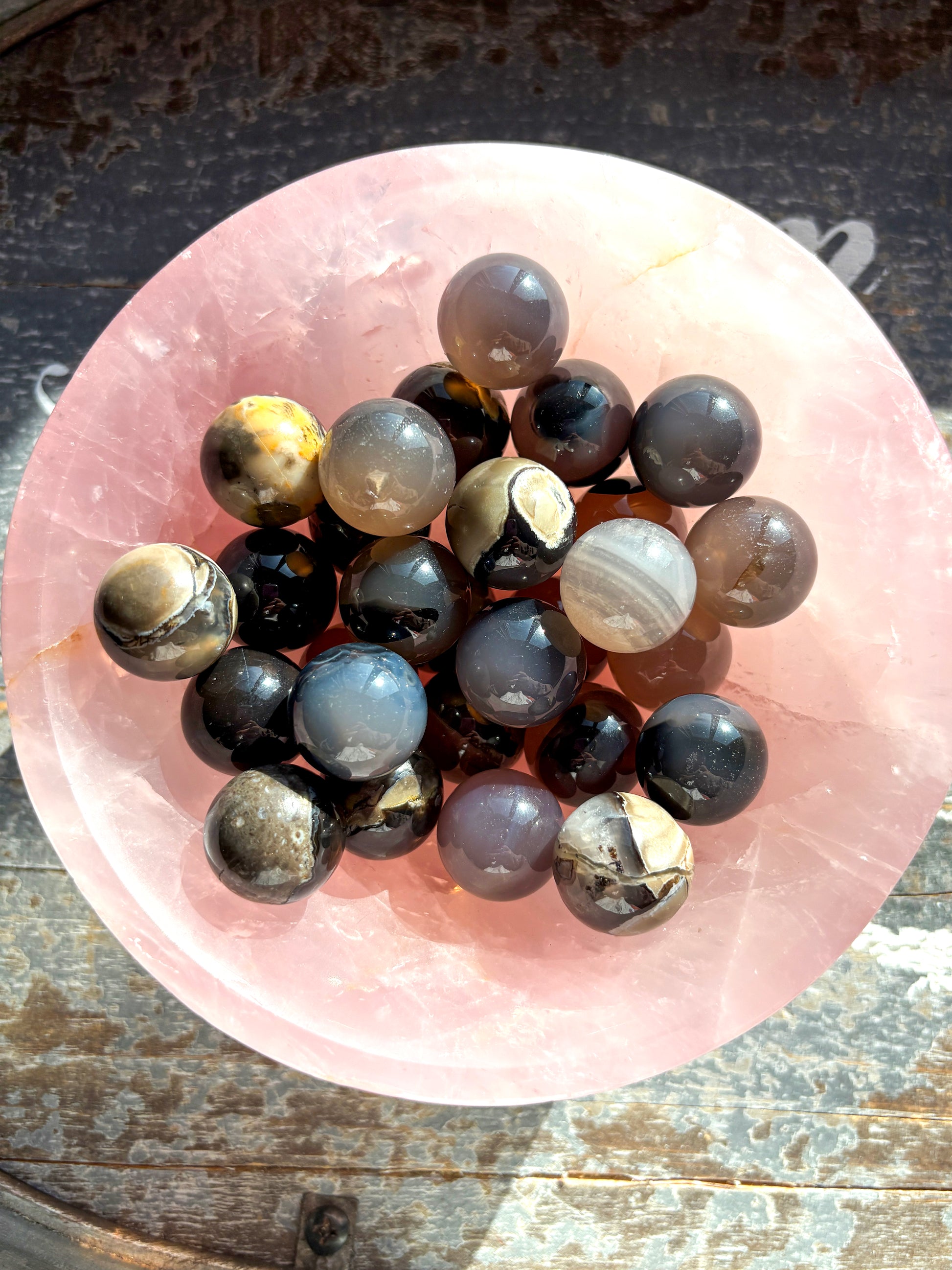 One (1) Volcano Agate Mini Sphere, UV reacts Green
