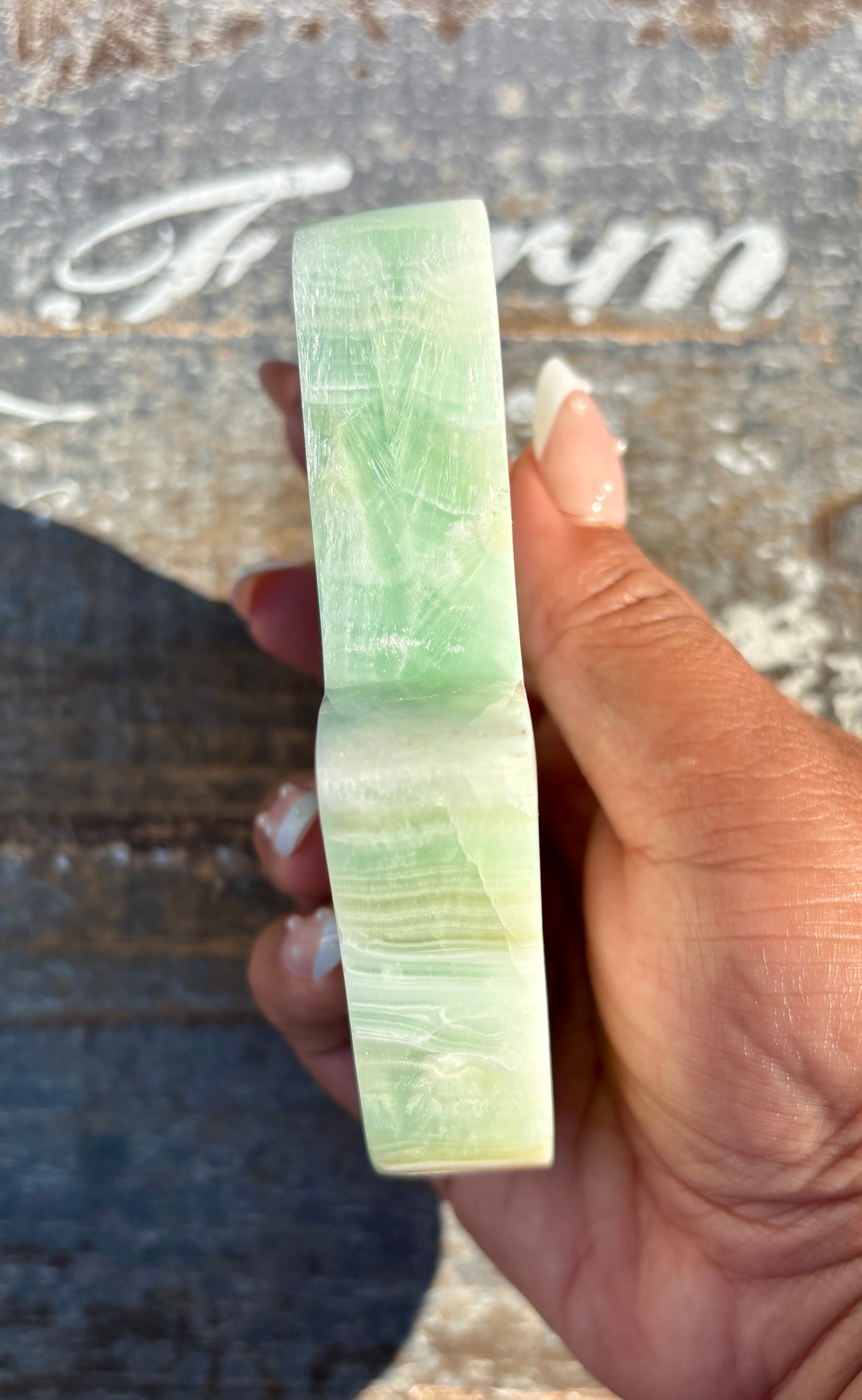 Pistachio Calcite is a gentle yet powerful crystal known for its soothing shades of pale mint, seafoam, and soft green. This stone radiates calming energy, making it a beautiful support for emotional balance, heart healing, and deep energetic renewal.