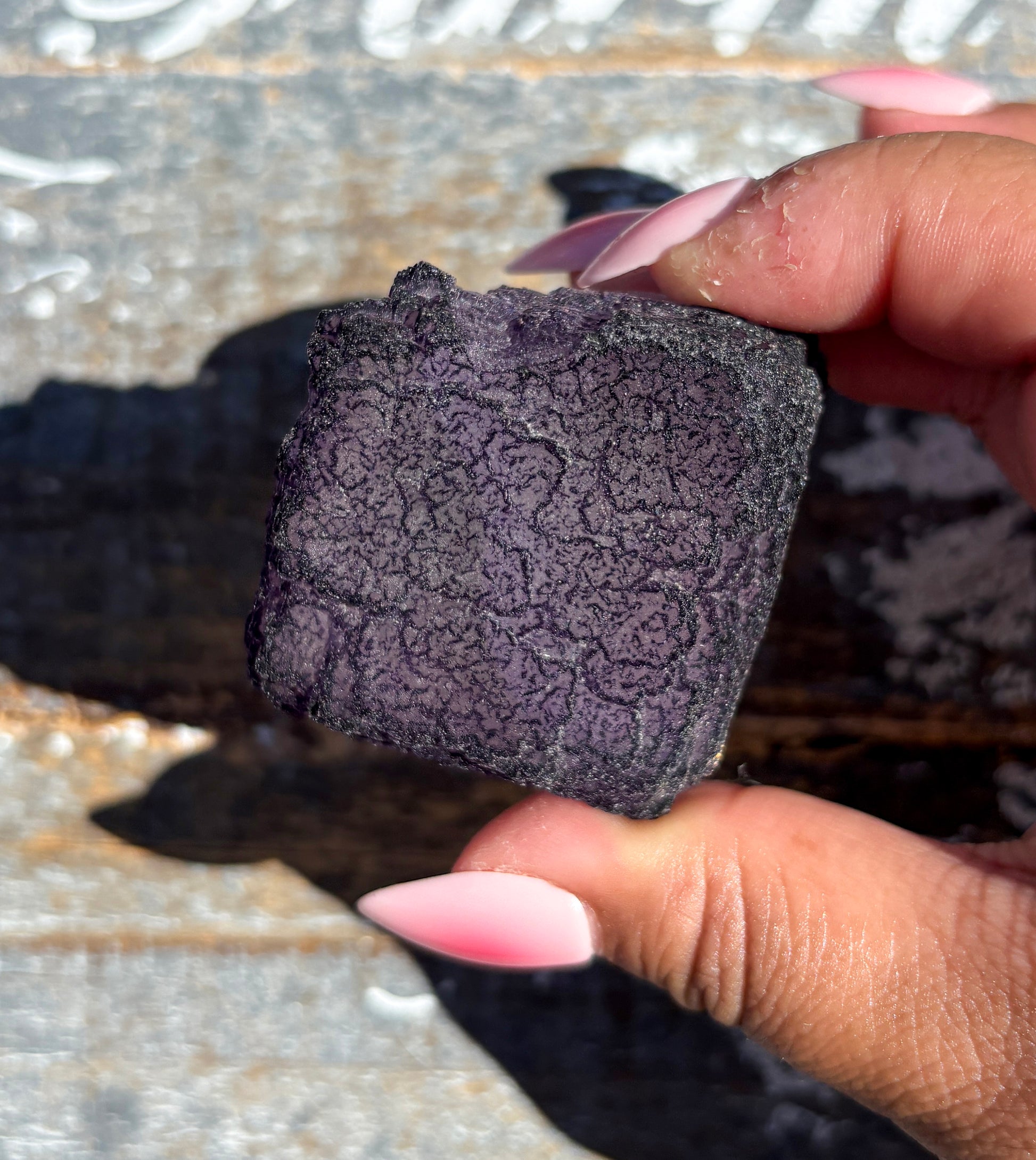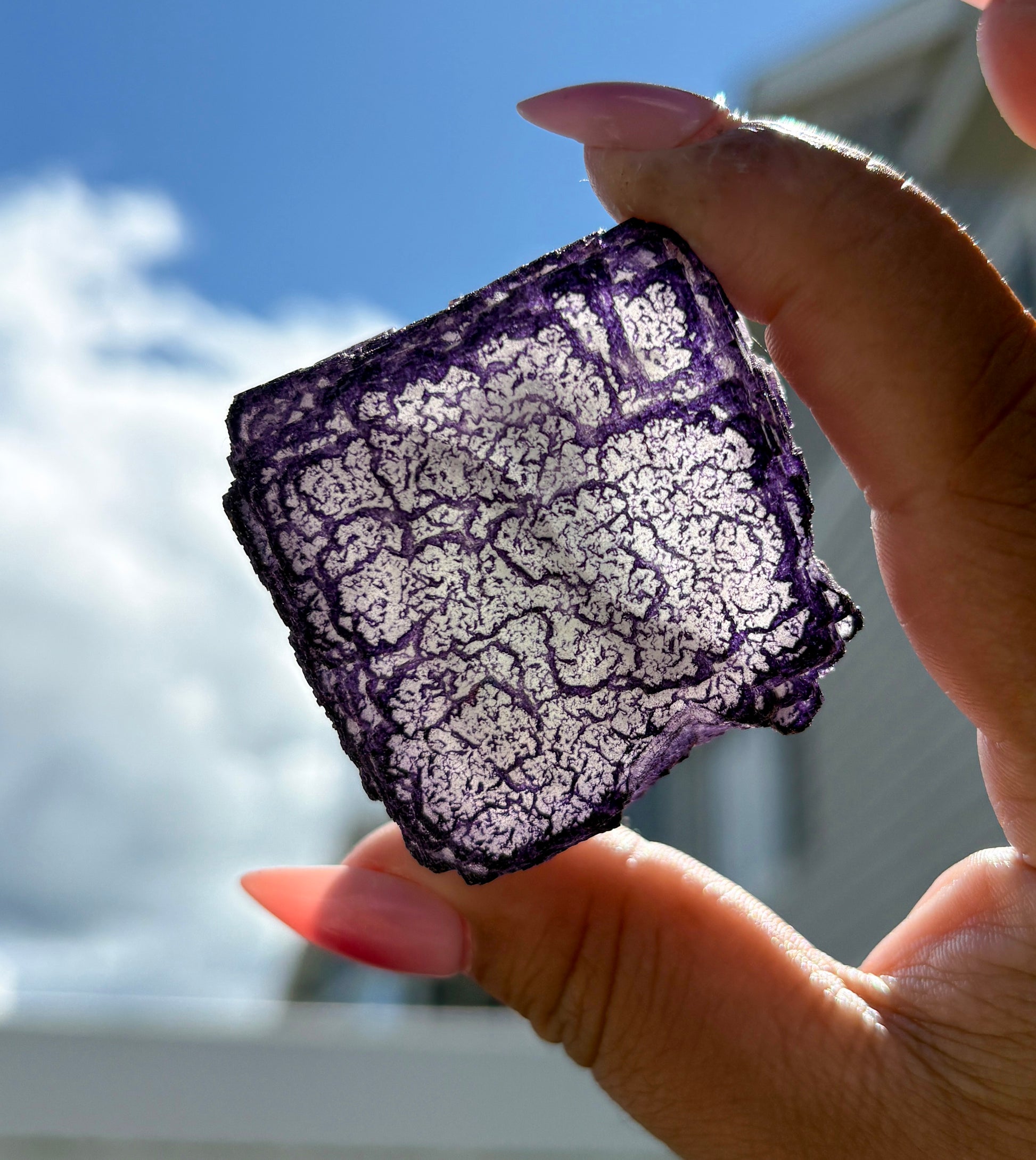 This unique variety of Fluorite, nicknamed “QR Code” Fluorite, gets its name from the naturally occurring, grid-like patterns within the stone that resemble a digital code. Sourced from China, each piece showcases stunning bands of purples, greens, and occasional blues — the signature hues of high-quality Fluorite.