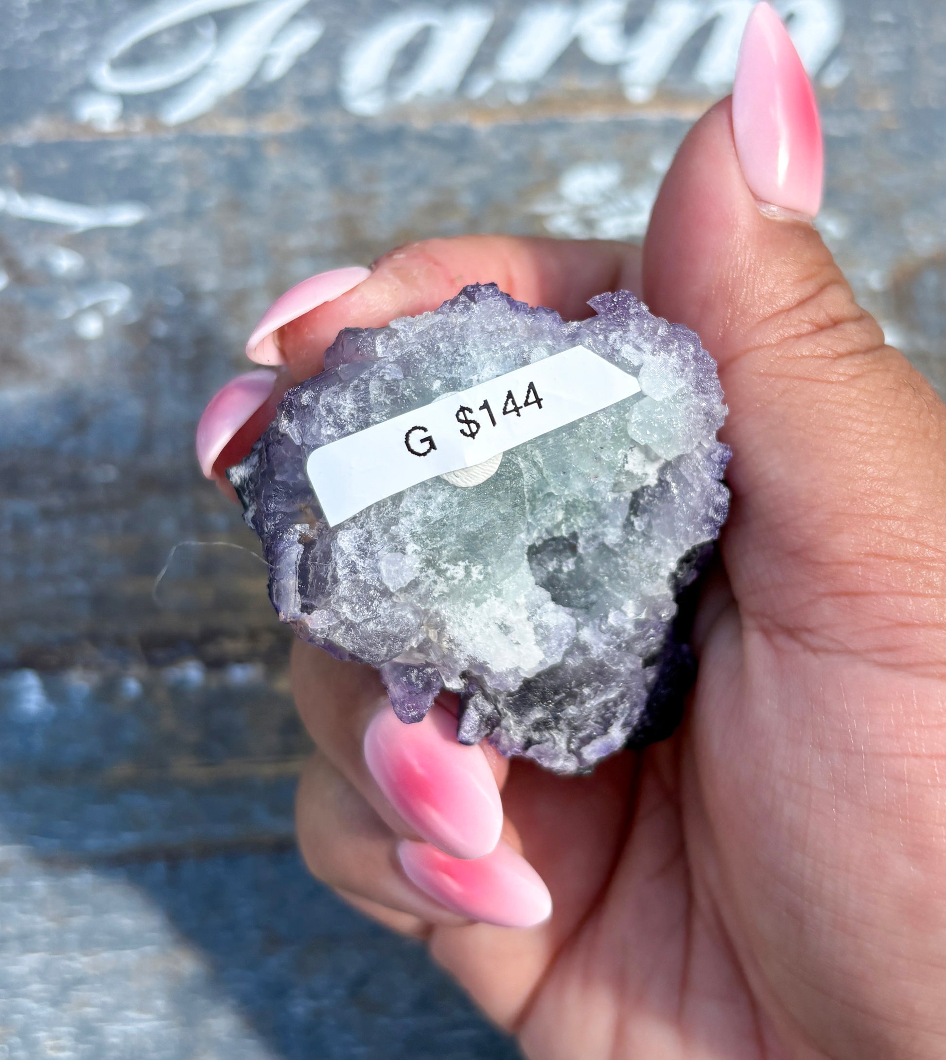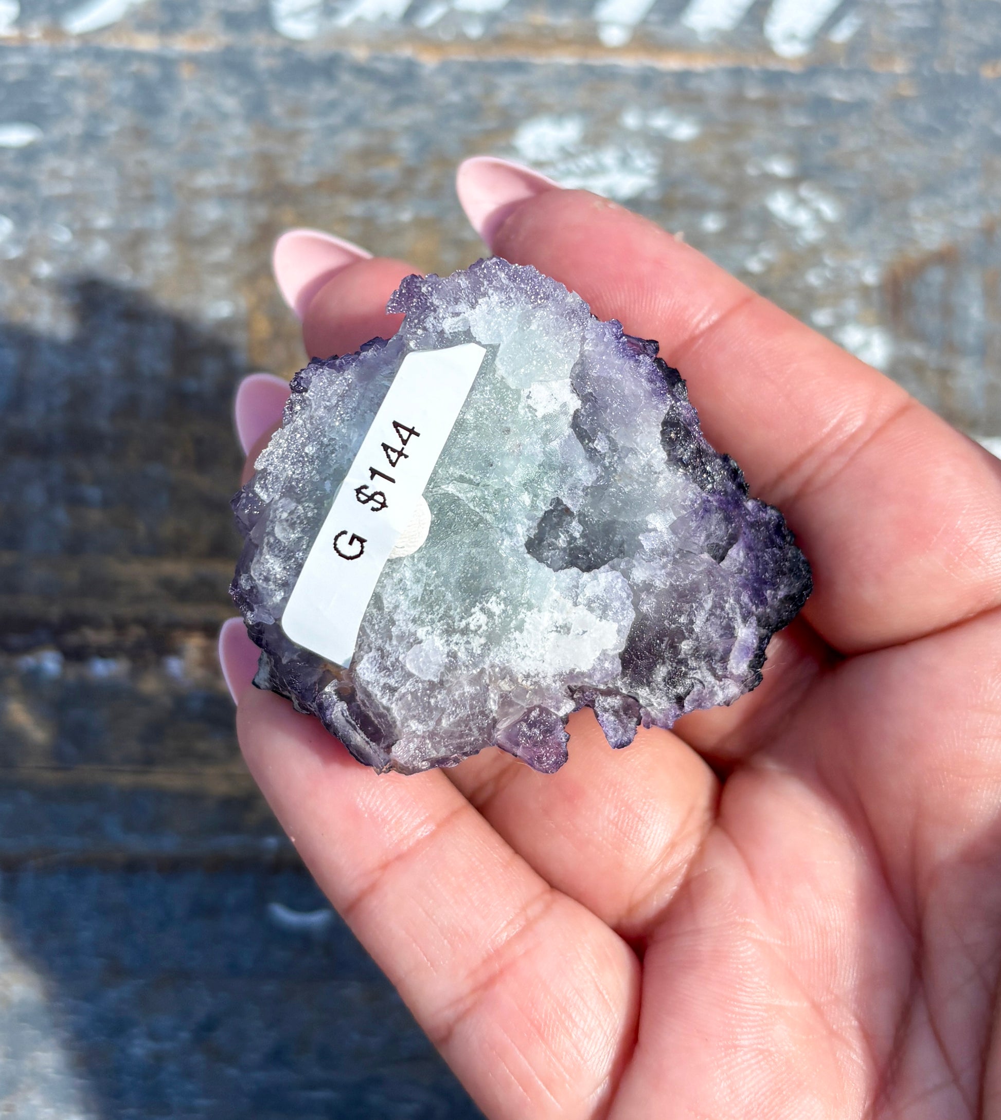 This unique variety of Fluorite, nicknamed “QR Code” Fluorite, gets its name from the naturally occurring, grid-like patterns within the stone that resemble a digital code. Sourced from China, each piece showcases stunning bands of purples, greens, and occasional blues — the signature hues of high-quality Fluorite.