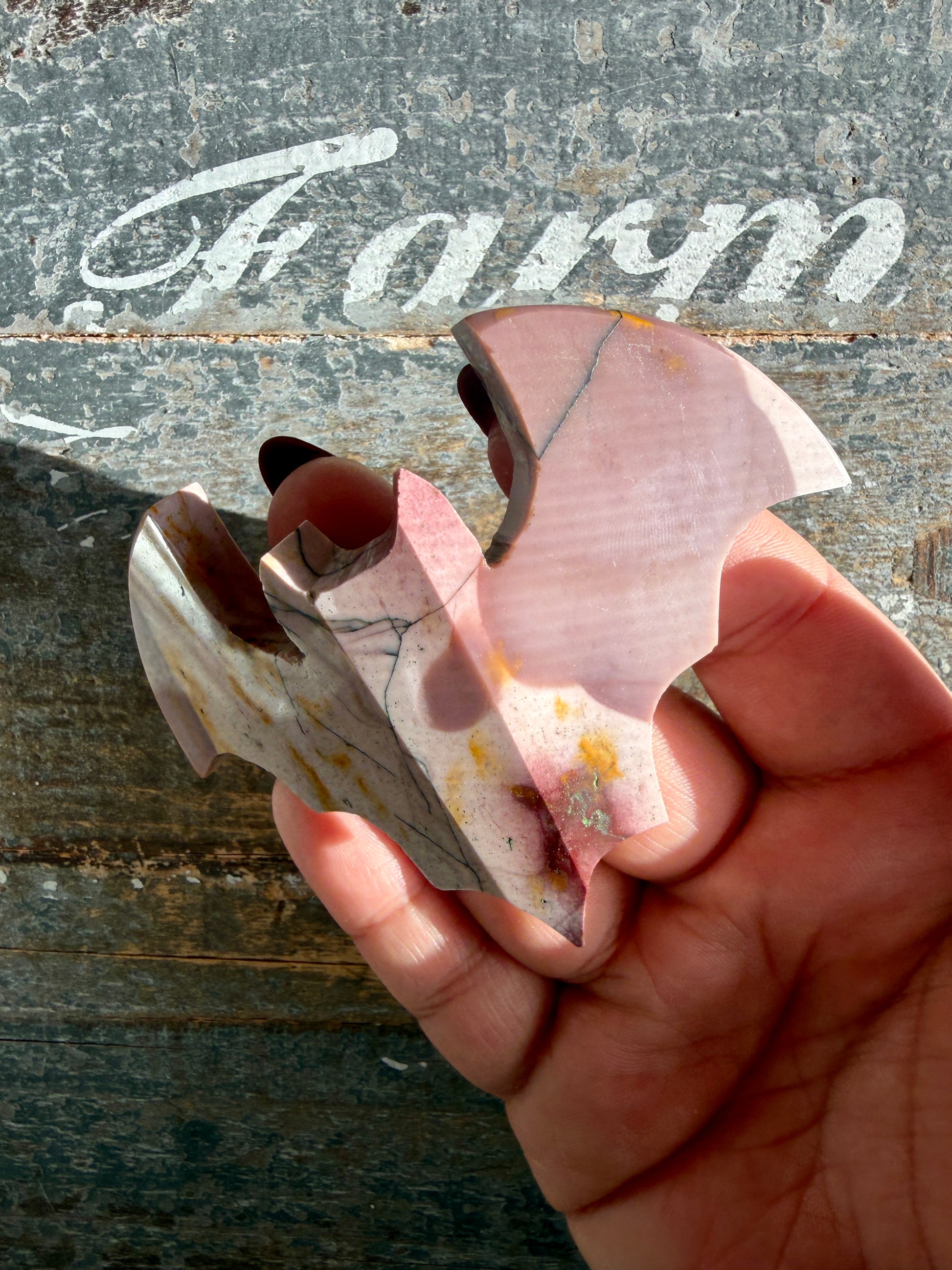 Mookaite, a vibrant form of Australian Jasper, is known for its striking earthy hues — deep reds, warm yellows, and soft creams — each piece reflecting the rugged beauty of the Australian outback where it’s found. This stone carries a grounding yet invigorating energy, helping to stabilize the spirit while encouraging vitality, confidence, and an adventurous outlook.