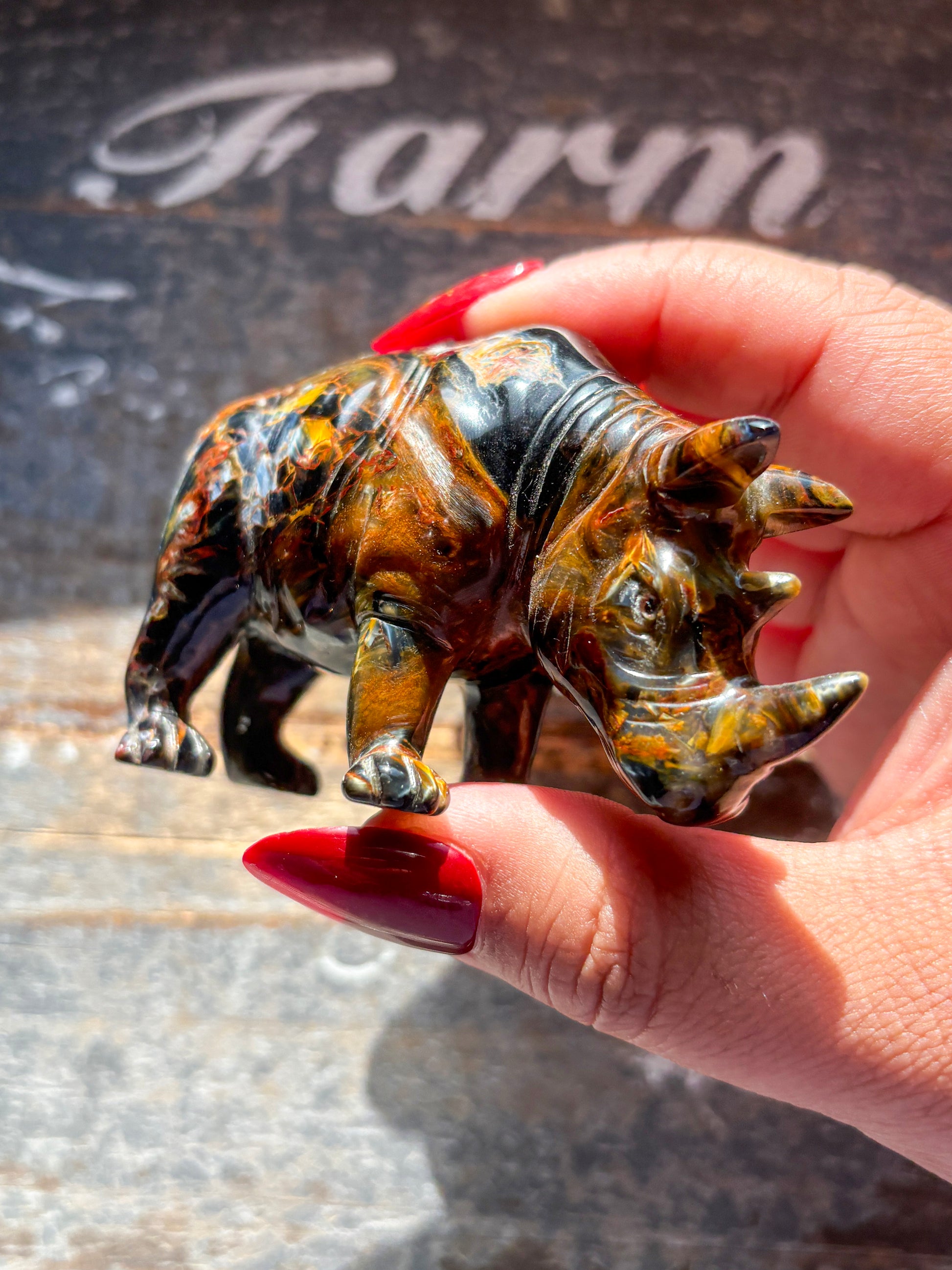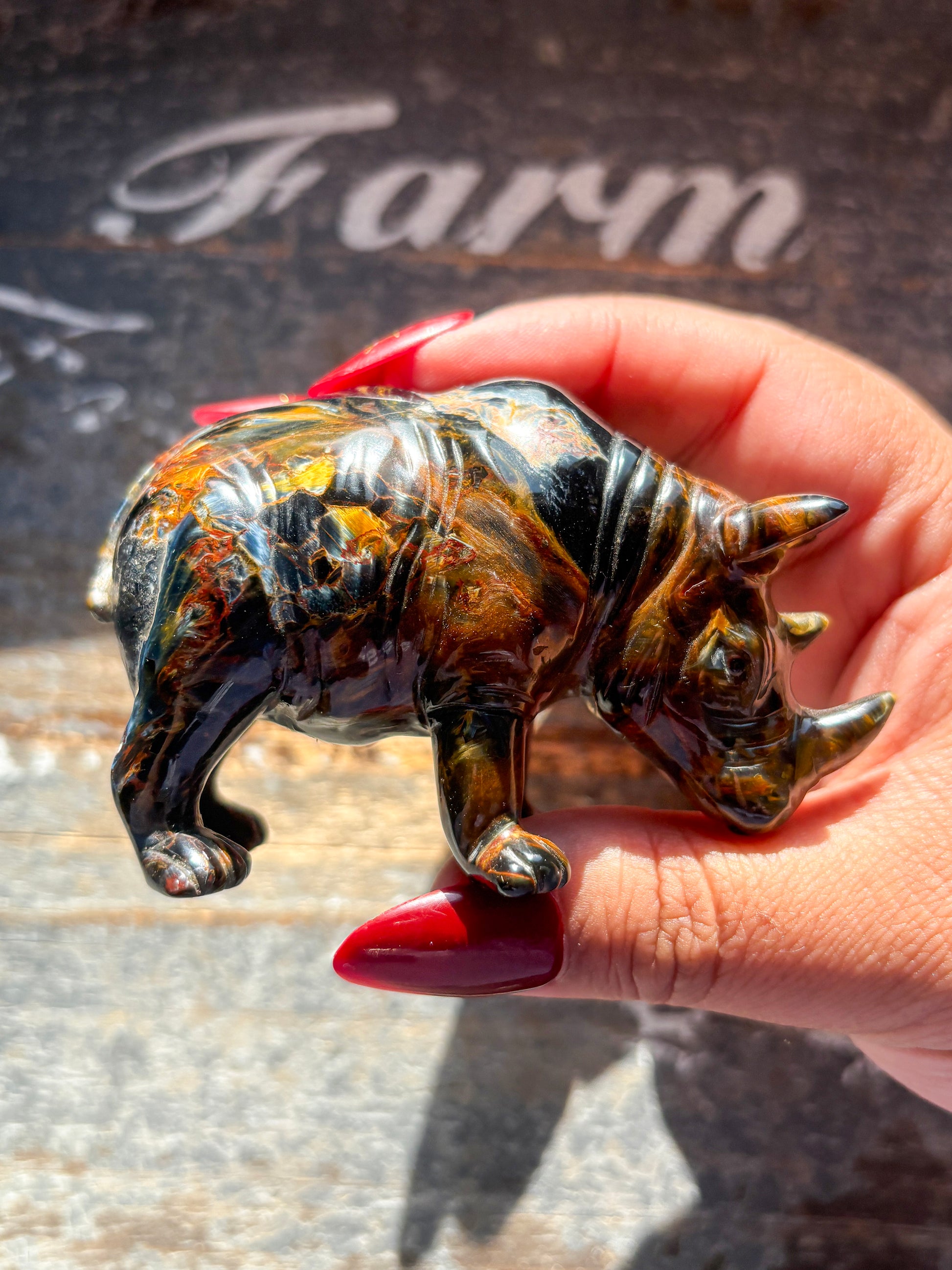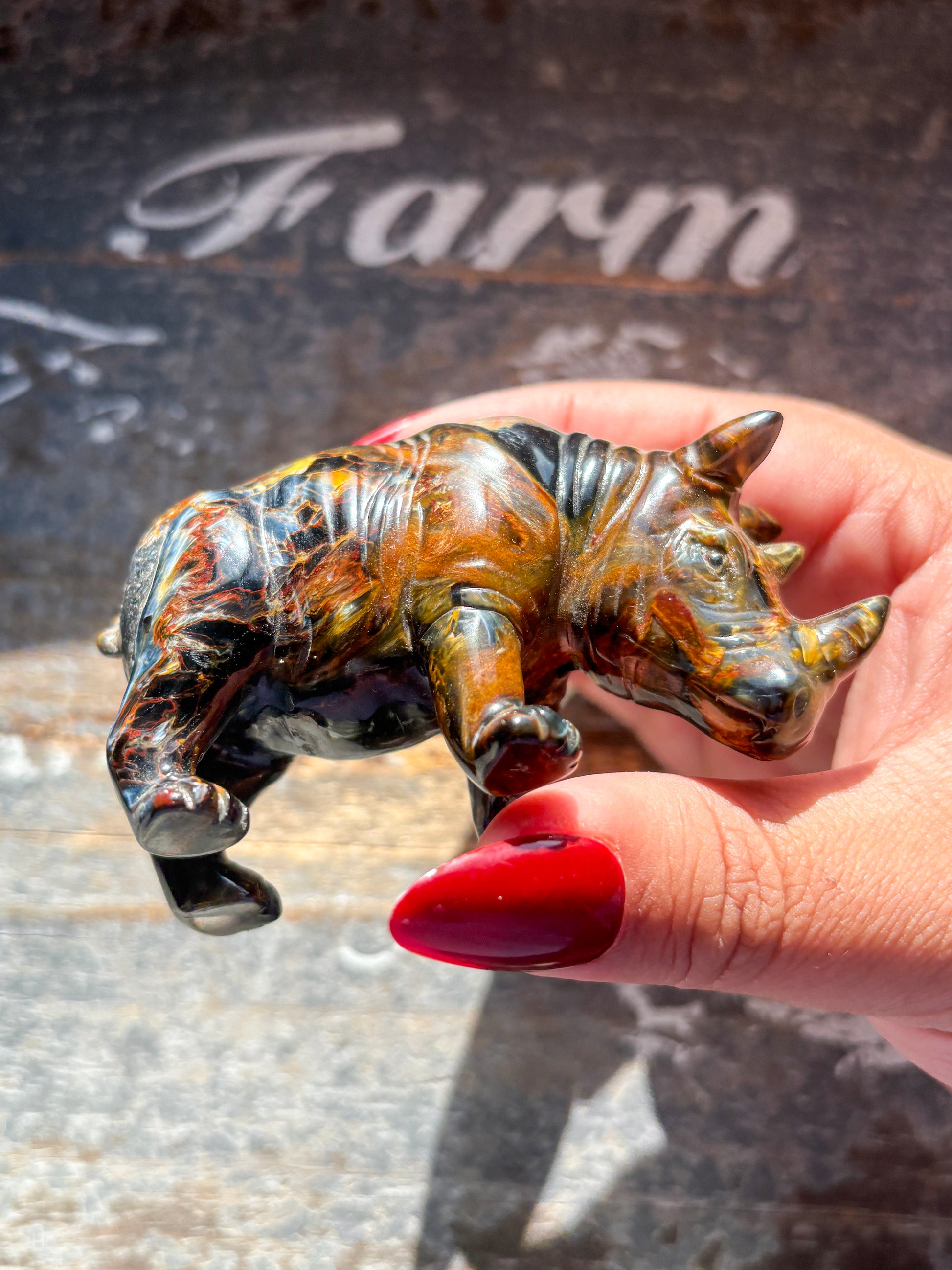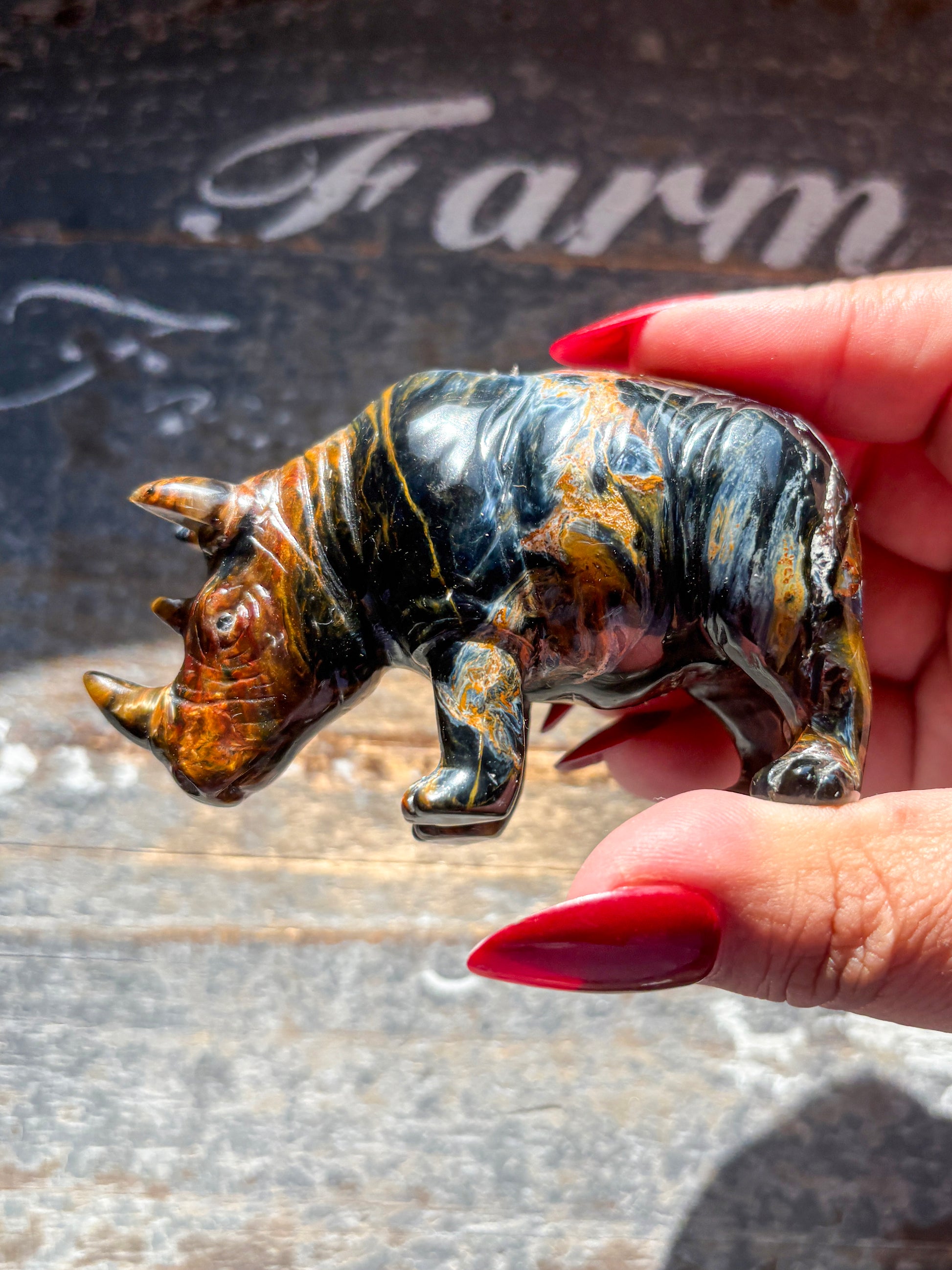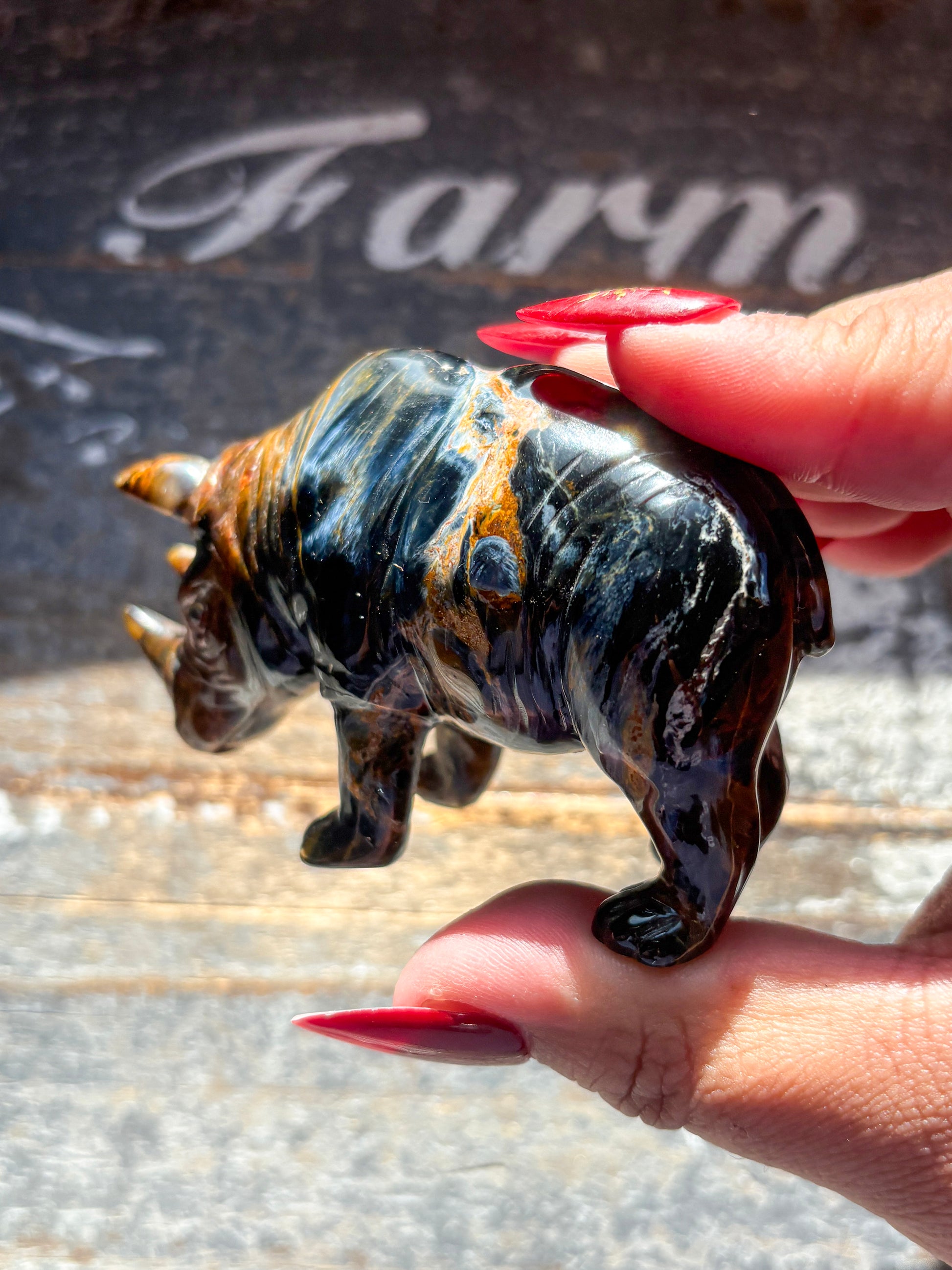 Unique Pietersite Hand Carved Rhino